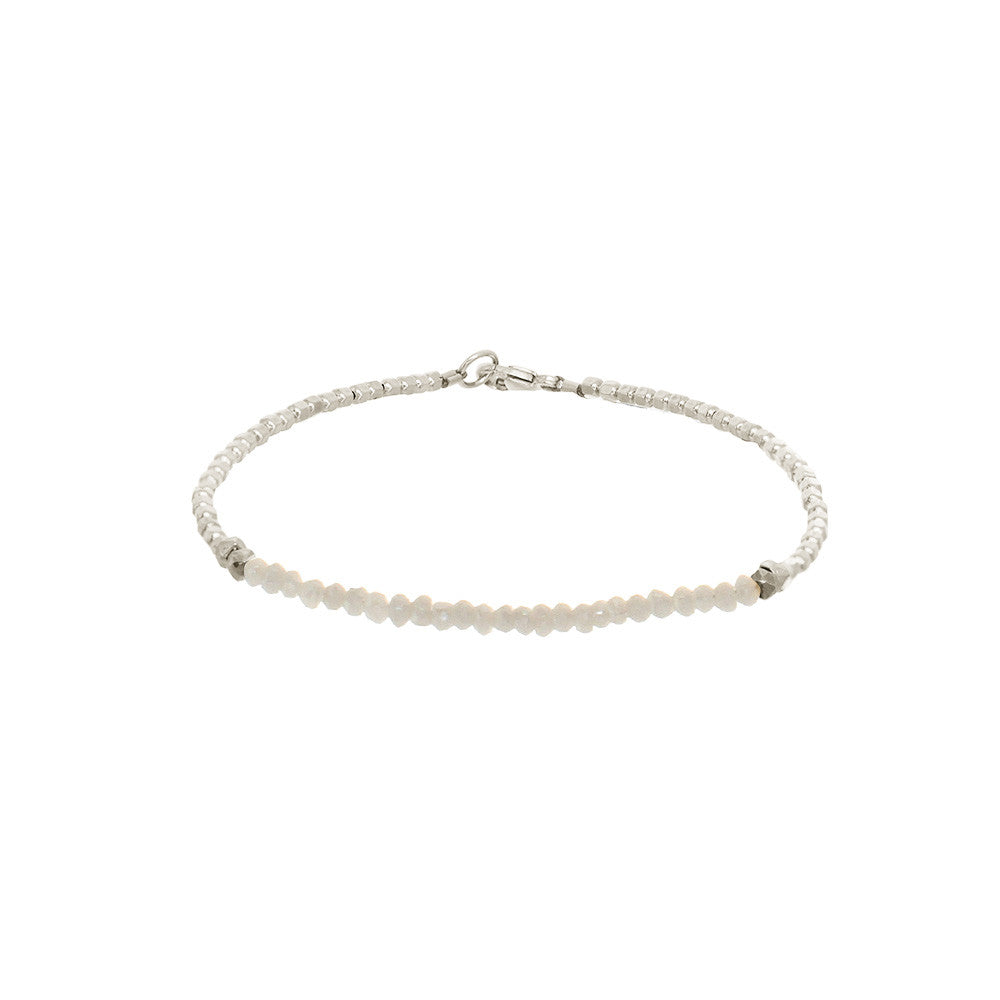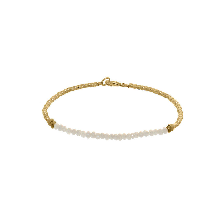 Handcrafted in 18k Gold Vermeil or Recycled Sterling Silver with white mystic topaz gemstone rondelles. Bracelet measures 7.5' in length.