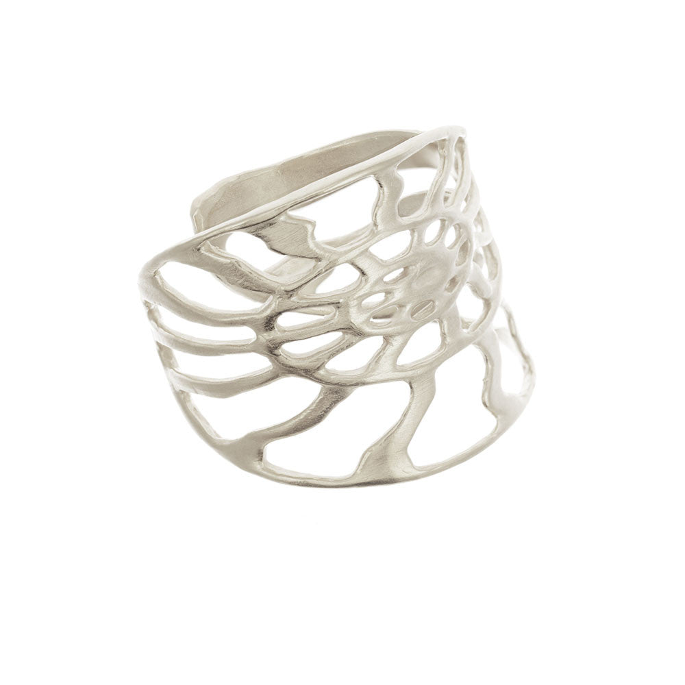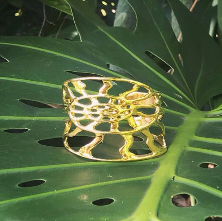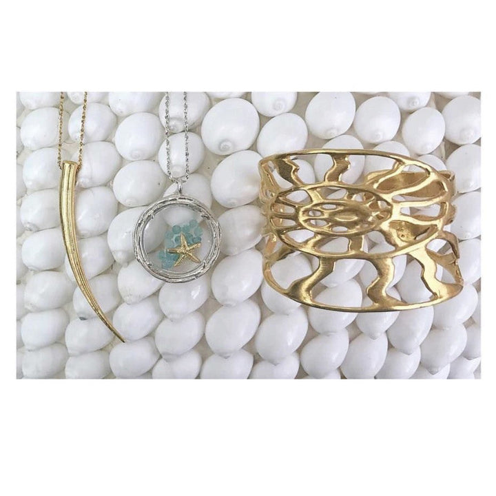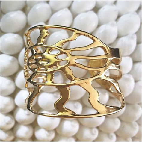 This Nautilus Cuff Bracelet by Catherine Weitzman is a bold tribute to the sea. With its sinuous curves and marine-inspired detailing, this cuff blends edginess with elegance. Perfect for ocean lovers and trendsetters alike, it adds a splash of undersea mystery to both casual and elevated ensembles. Handmade in Hawaii.