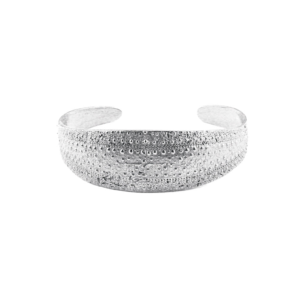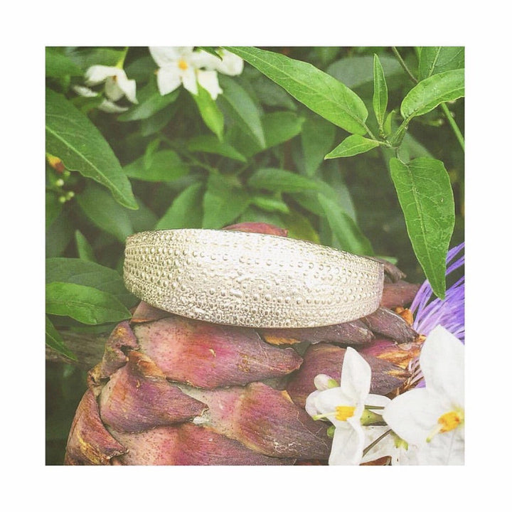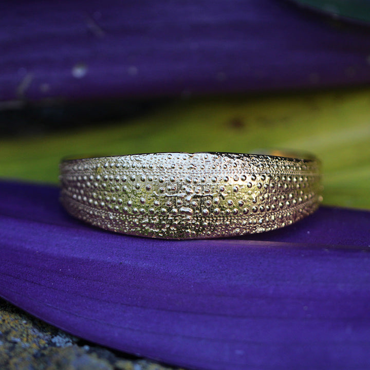 This Urchin Cuff by Catherine Weitzman captures the intricate texture of a real sea urchin shell in radiant detail. Inspired by the Hawaiian seashore, this bold cuff blends nature’s rugged beauty with refined craftsmanship, creating a wearable statement from the sea. Handmade in Hawaii.