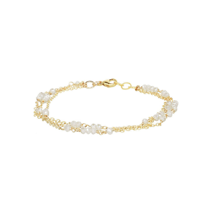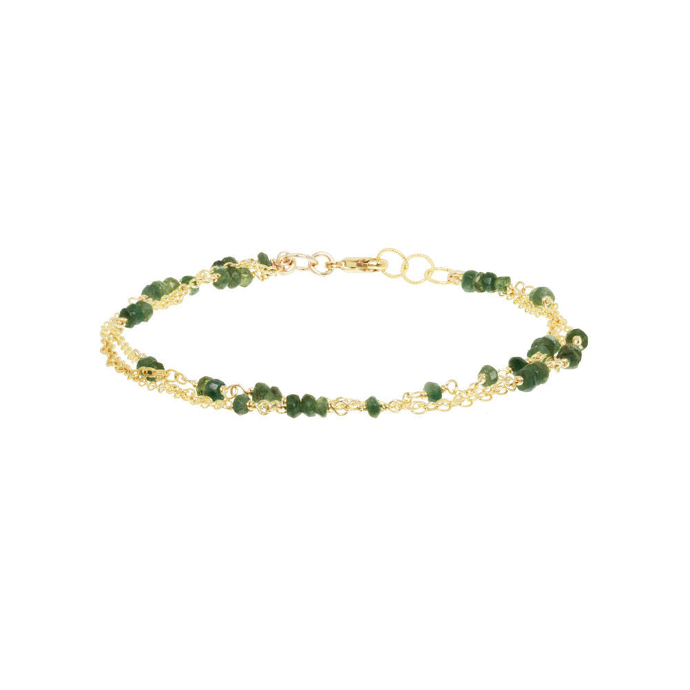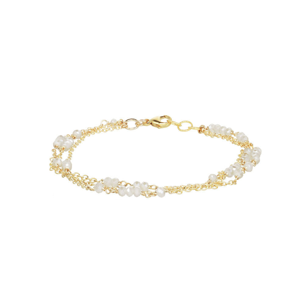 This 3 Strand Gemstone Chain Bracelet by Catherine Weitzman offers a delicate yet dynamic interplay of color and shine. Three strands of dainty chain and hand-placed semi-precious rondelles create a look that feels both intentional and effortlessly bohemian. A sophisticated way to layer with ease. Handmade in Hawaii.