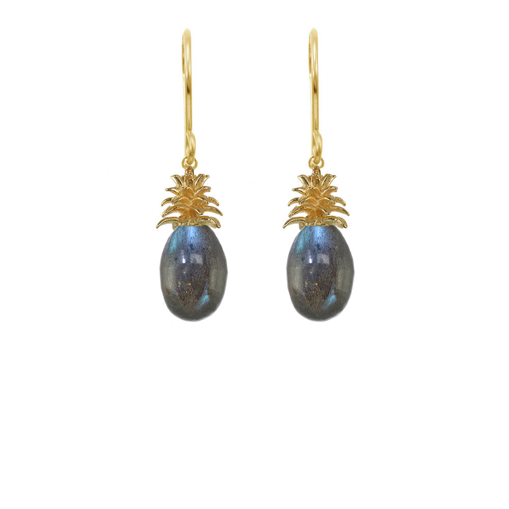These Pineapple Gemstone Earrings by Catherine Weitzman are a playful and luxurious ode to tropical nature. Designed to resemble the iconic fruit, these earrings glimmer with semi-precious gemstones set in a sculptural pineapple motif. Symbolizing warmth, welcome, and abundance, they bring a radiant island spirit to your jewelry collection.