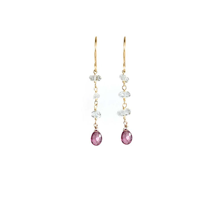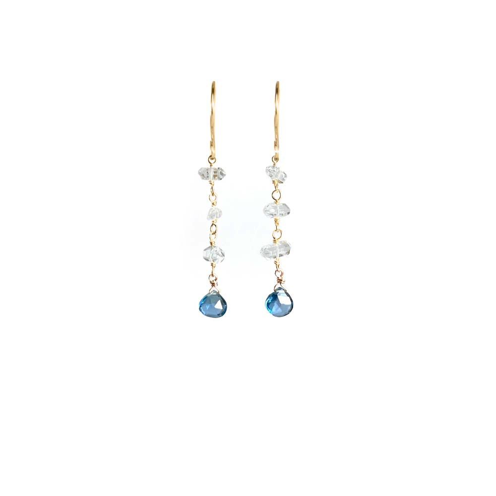 Handmade in Hawaii. 18k gold vermeil with Herkimer diamond and London Blue Topaz or Pink Topaz. Length: 1.5 inches.