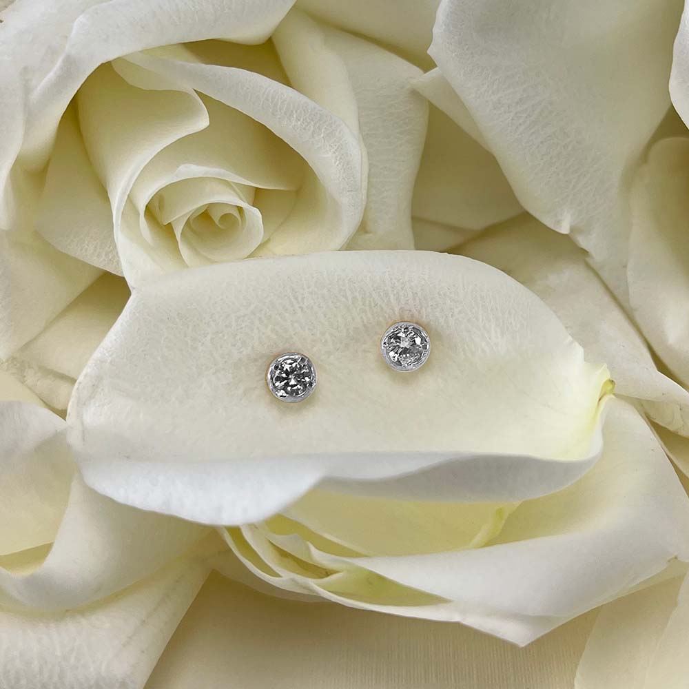 Handmade in Hawaii. Gold or silver plating with 4mm white cubic zirconia stones. Size: 4mm.