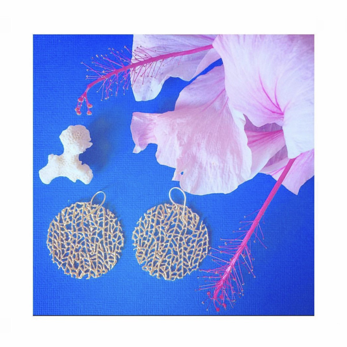 These Large Coral Disc Earrings by Catherine Weitzman are bold yet refined oceanic treasures. Cast from real fan coral, they feature swirling, natural textures in a lightweight form—ideal for adding a touch of coastal sophistication.