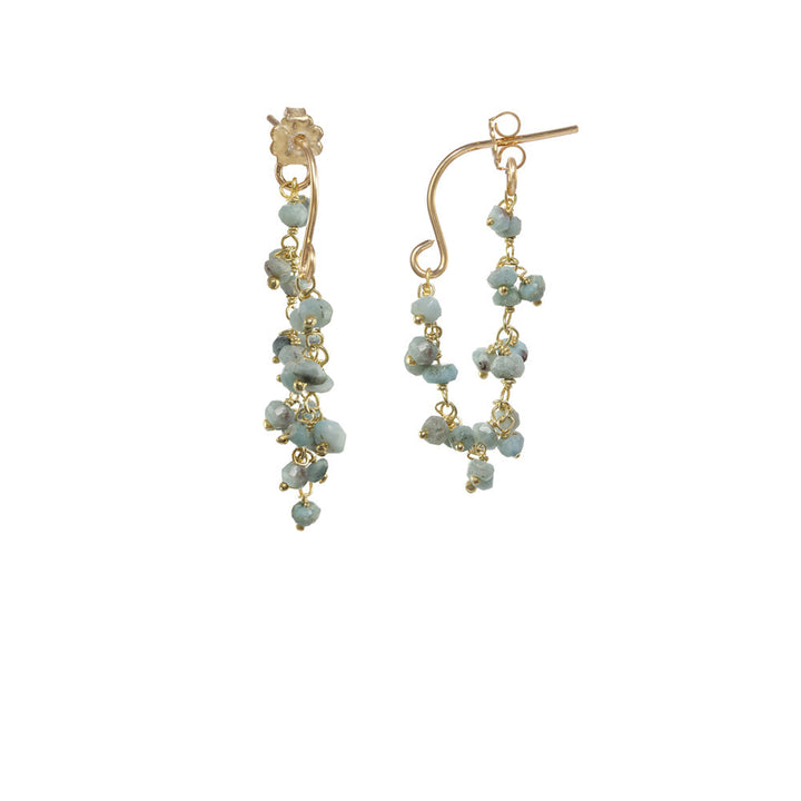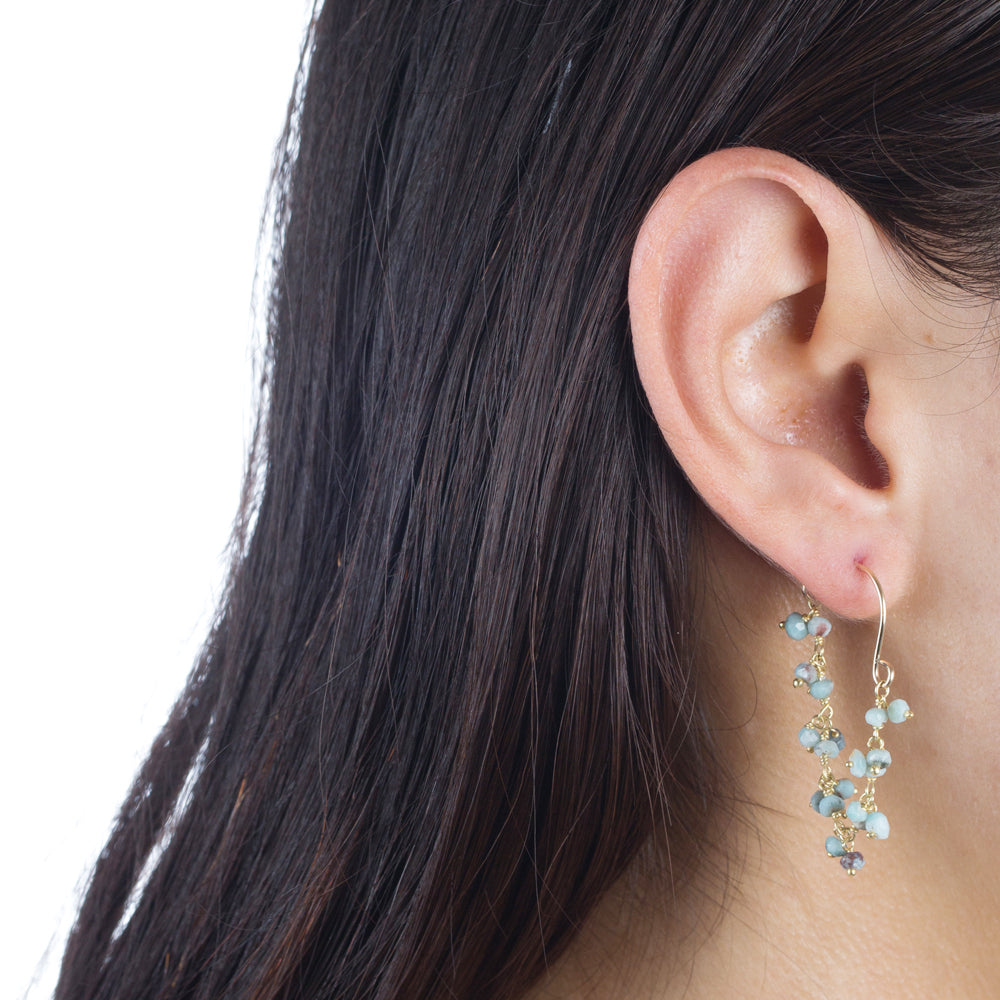 These Gemstone Dangle Hoop Earrings by Catherine Weitzman are designed for movement and light. A trio of amethyst gemstones hangs delicately from a fine gold-fill chain, creating a silhouette that’s both artistic and adaptable.