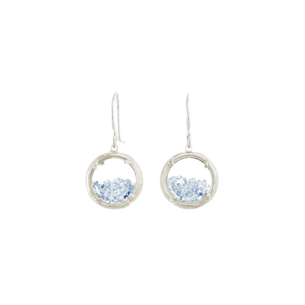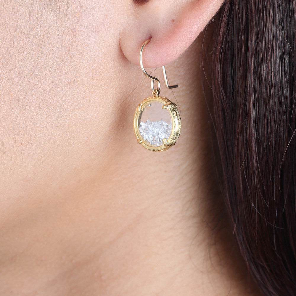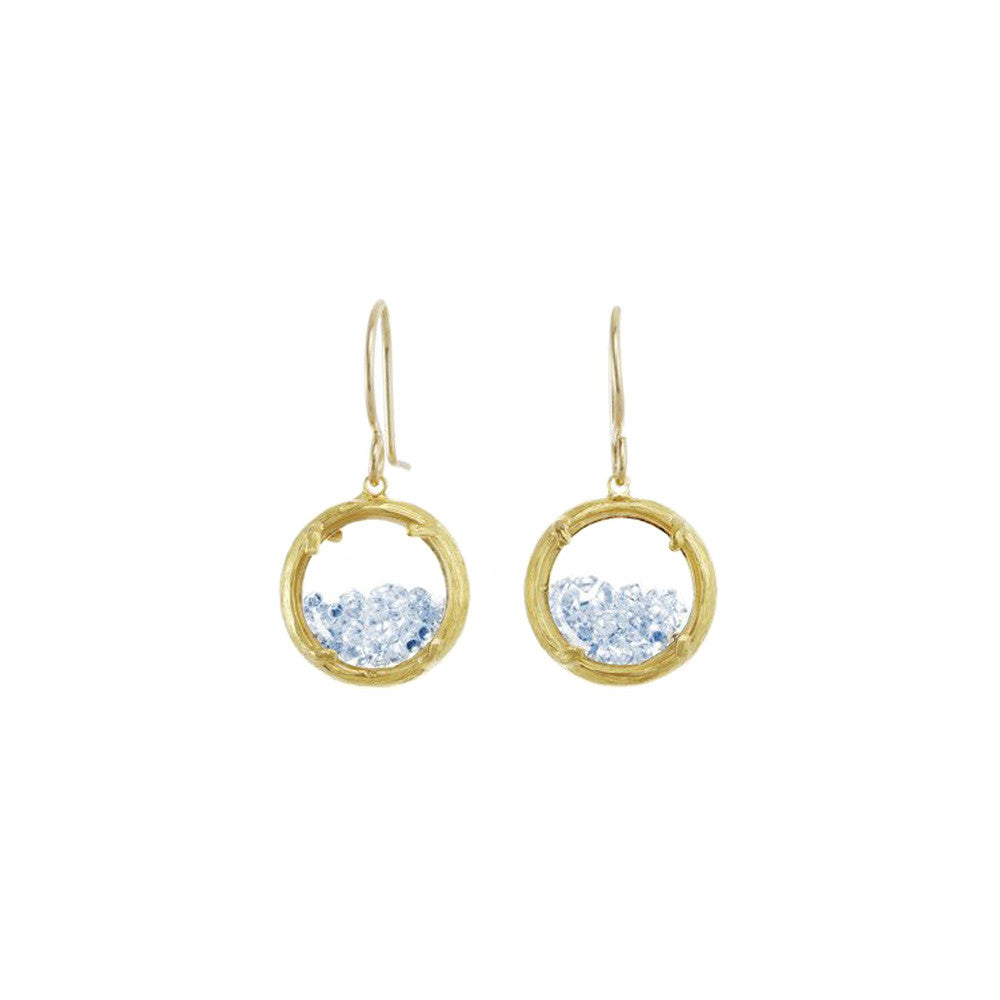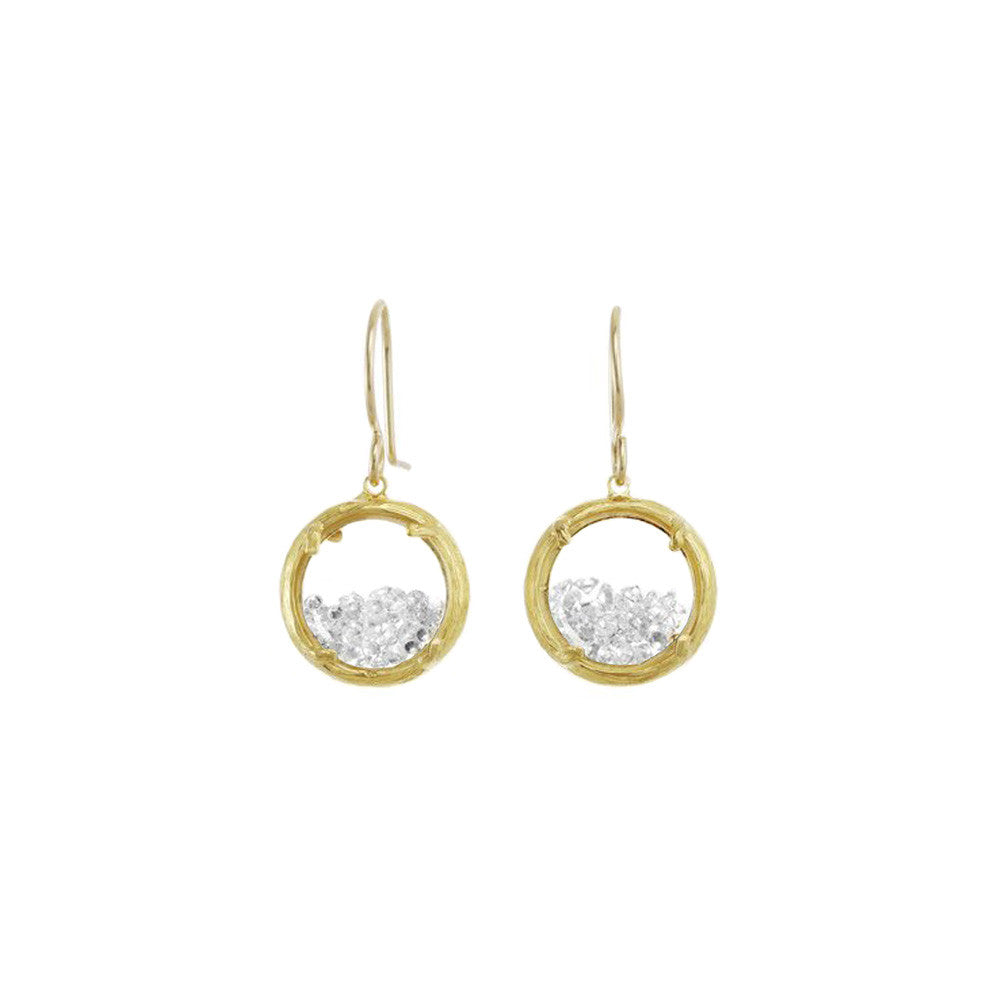 These Mini Shaker Earrings by Catherine Weitzman are petite powerhouses of color and light. Framed in organically textured metal, the two-sided glass chambers hold white crystals that shimmer with joyful movement. Effortlessly elevating any outfit, they capture the designer’s signature blend of nature and sparkle. Handmade in Hawaii.