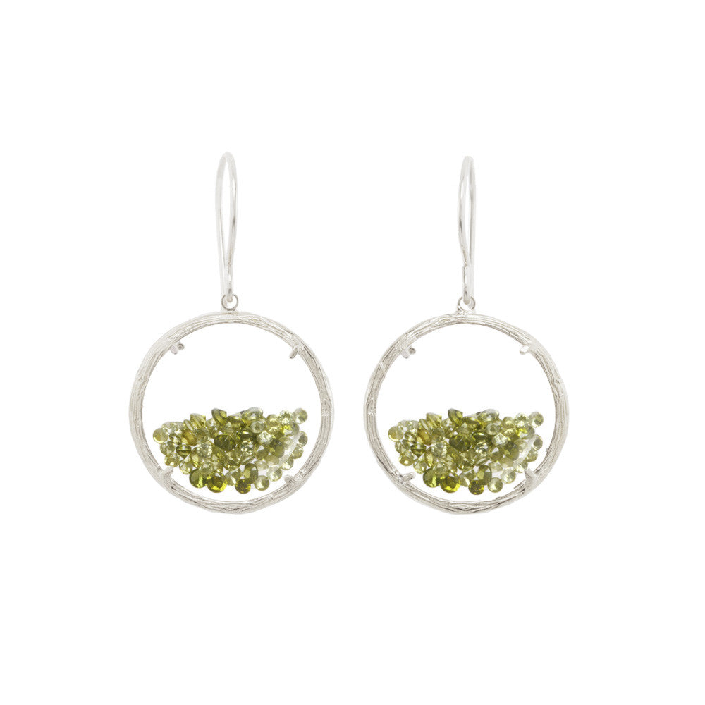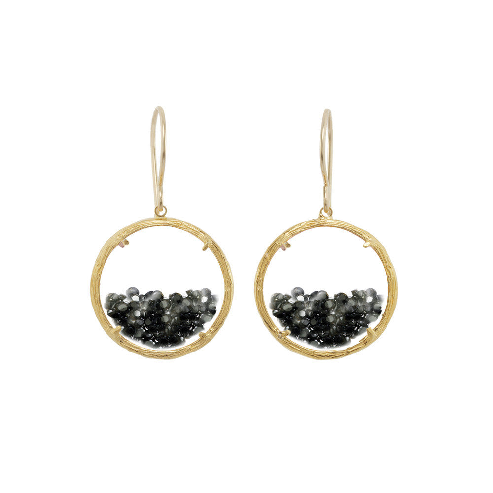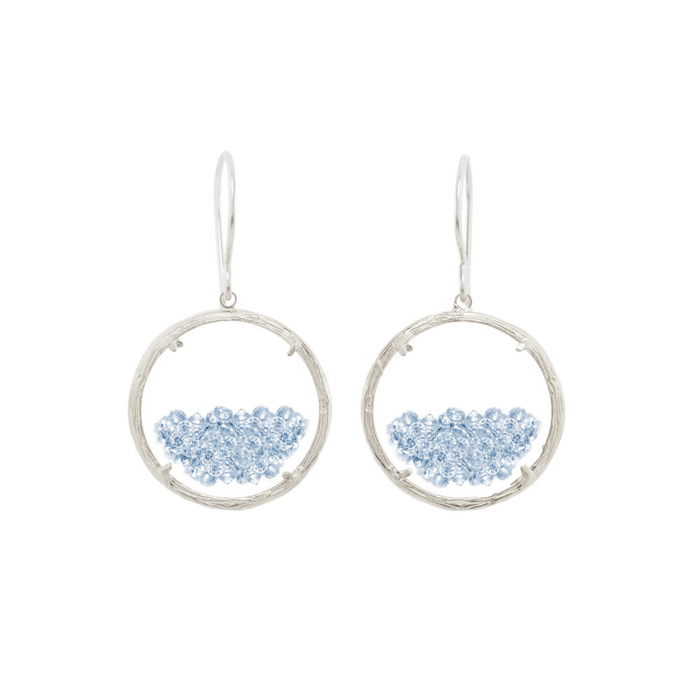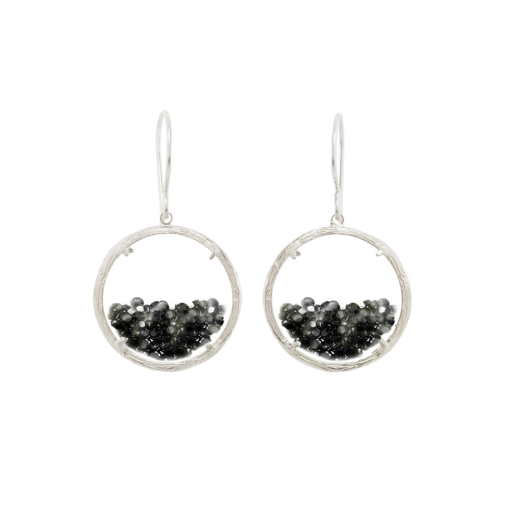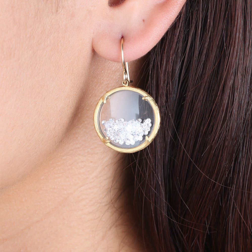 These Shaker Earrings by Catherine Weitzman are a joyful fusion of motion and sparkle. Encased in dual-sided watch glass, free-floating white crystals shift and shine with every step, framed by softly textured branches. A captivating signature design that never fails to dazzle. Handmade in Hawaii.
