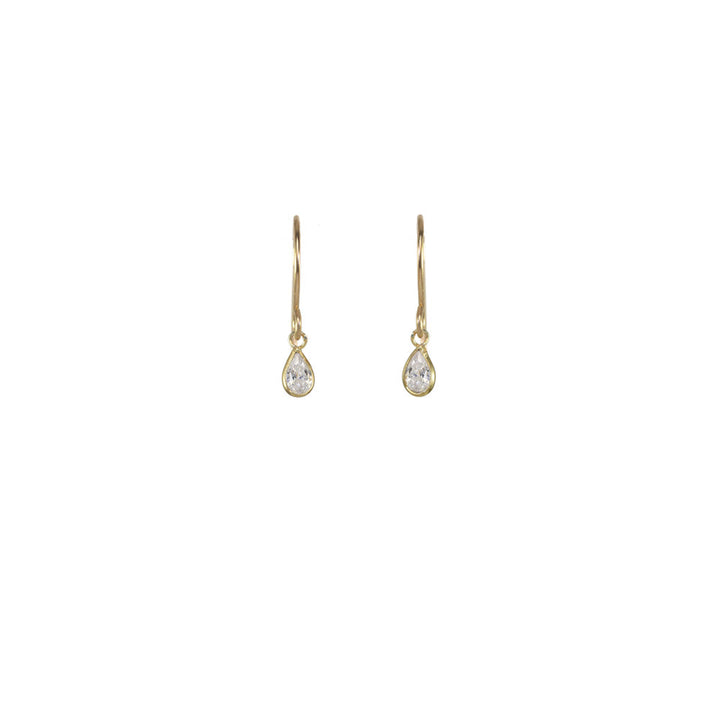 These Mini Bezel Solitaire Earrings by Catherine Weitzman offer timeless elegance in a dainty silhouette. Featuring glimmering white teardrop crystals set in a gold-plated bezel, they transition effortlessly from daywear to evening chic. A minimalist essential with enduring charm. Handmade in Hawaii.