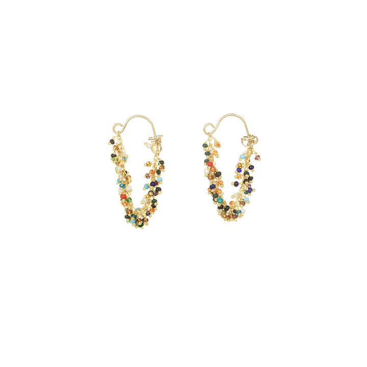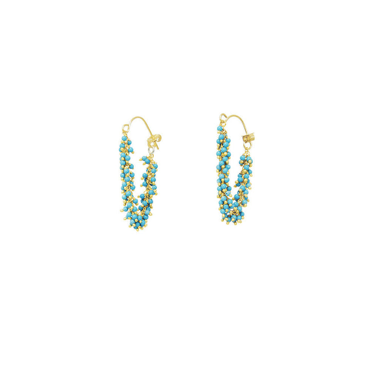 These Fringe Hoop Earrings by Catherine Weitzman pair graceful motion with bold design. Semi-precious aqua apatite stones shimmer from hand-wrapped fringe detailing, offering a luxe twist on the classic hoop. Lightweight yet captivating, they're perfect for statement styling. Handmade in Hawaii.
