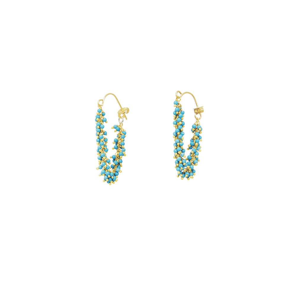 Gold-plated with semi-precious aqua apatite stones. Length: 25mm.