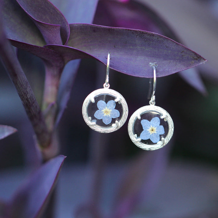 Handcrafted in 18k gold vermeil or recycled sterling silver with hand-pressed flowers. Diameter: 15mm.