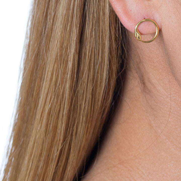 These Mini Snake Circle Posts by Catherine Weitzman reinterpret an ancient symbol with contemporary finesse. Each serpent coils into a delicate circle, embodying transformation and eternity. The minimalist design and subtle details make these earrings perfect for daily wear, adding a touch of mystique and elegance to any outfit.