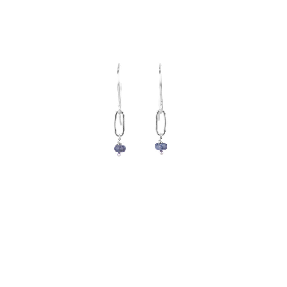 Handcrafted in 18k Gold Vermeil or Recycled Sterling Silver with semi-precious stones including sapphire. Length is 1.0'.