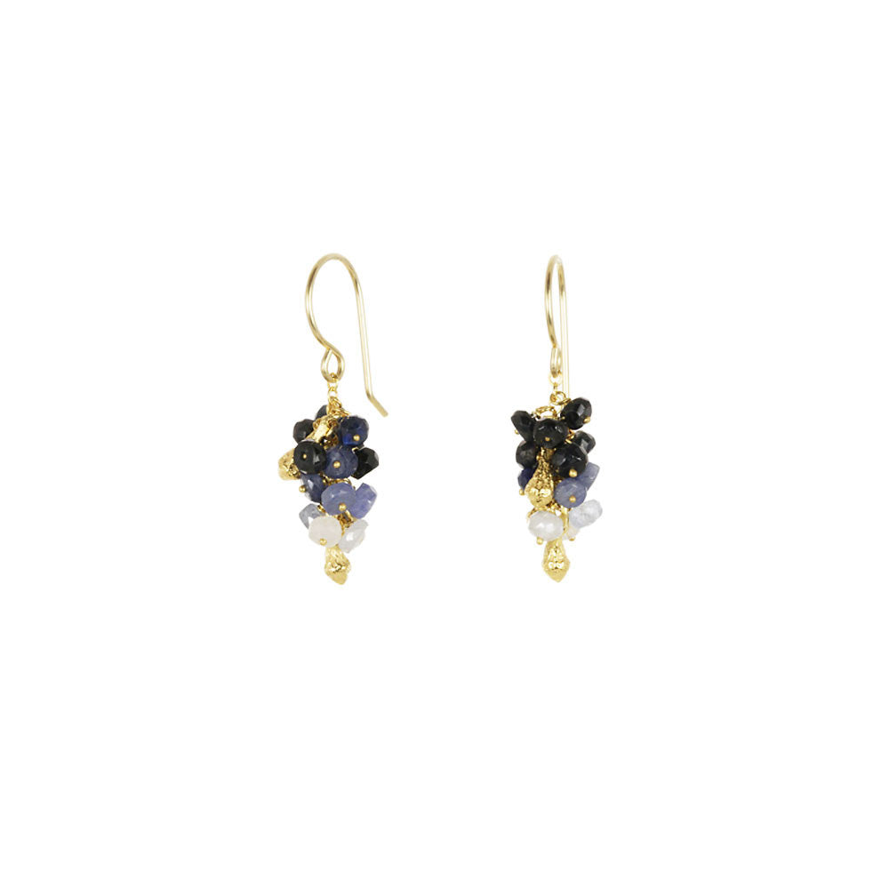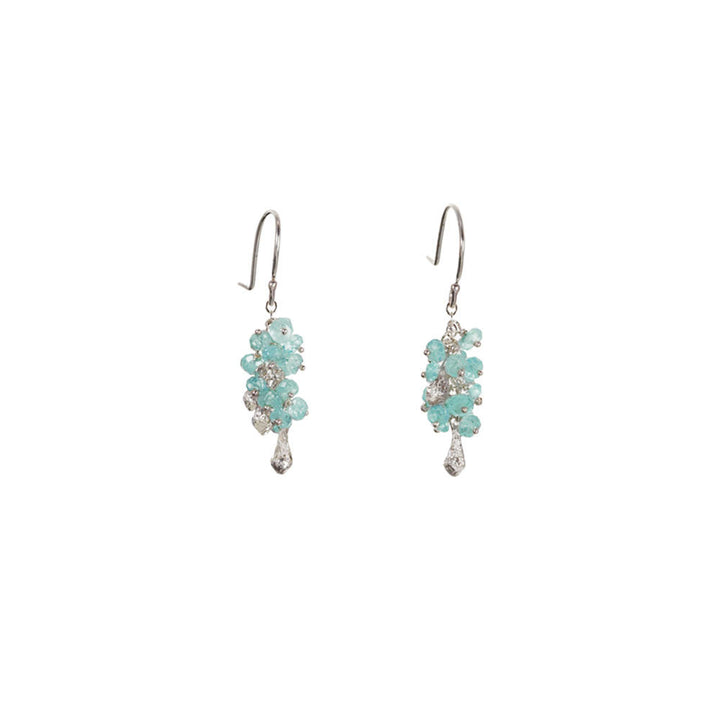 These Seed Pod Cluster Earrings by Catherine Weitzman combine organic forms and gemstone color for a look that’s polished and playful. A cascade of aqua apatite rondelles is accented by tiny seed pod charms, blending nature’s beauty with wearable elegance. A perfect pair to add vibrant energy to your daily rotation.