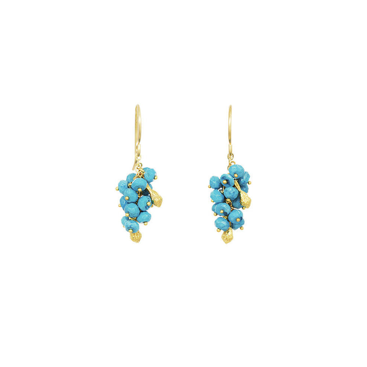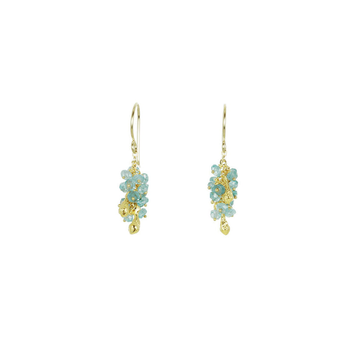 Handcrafted in 18k Gold Vermeil or Recycled Sterling Silver with aqua apatite gemstone rondelles. Earrings measure approximately 1'.