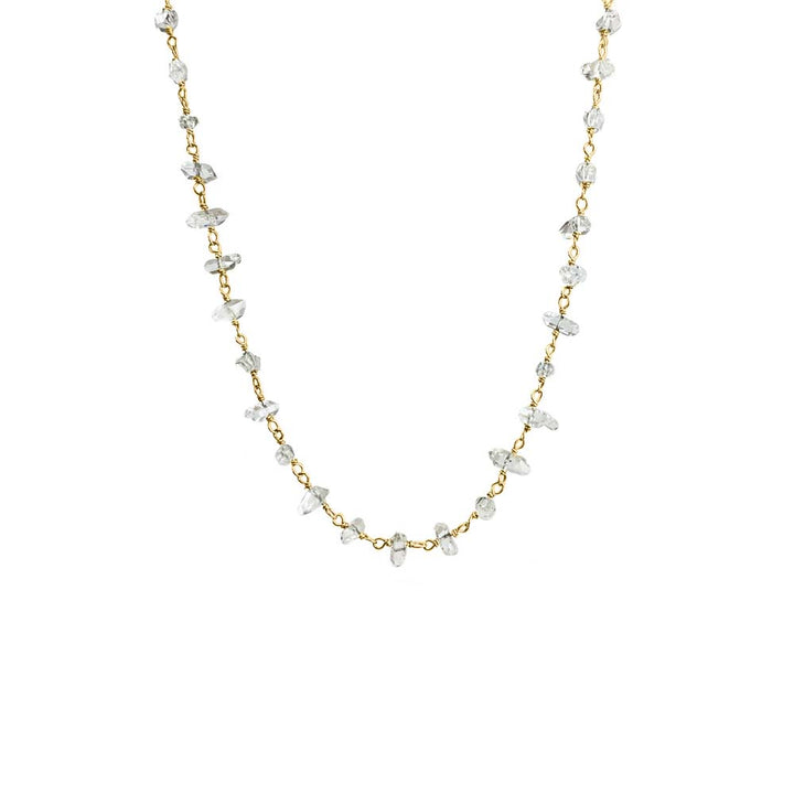 This Long Herkimer Diamond Necklace by Catherine Weitzman features individually hand-wrapped Herkimer diamonds along a graceful chain, offering a look that’s both organic and refined. Perfect for layering or wearing alone, it lends natural elegance to any ensemble.