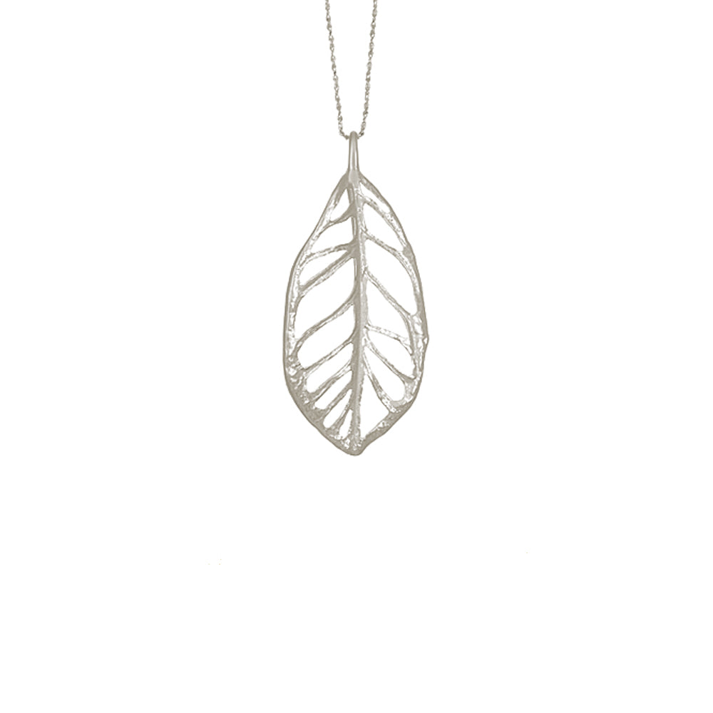 This Large Plumeria Necklace by Catherine Weitzman features a flowing leaf form cast from nature, offering a blend of rustic texture and sculptural beauty. Weighty yet graceful, it’s a natural statement piece with refined charm.