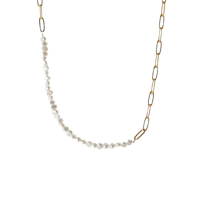 This Makiki Loop Necklace by Catherine Weitzman draws inspiration from the lush trails of O'ahu's upper forests. The flowing, paperclip-style chain and keishi pearl detail evoke the rhythm of nature and movement, blending everyday elegance with organic influence. Handmade in Hawaii.