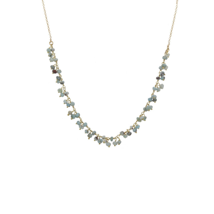 Gold-fill chain with semi-precious multi sapphire stones. Gemstone chain length: 6'; Total necklace length: 16' + 2' extension.
