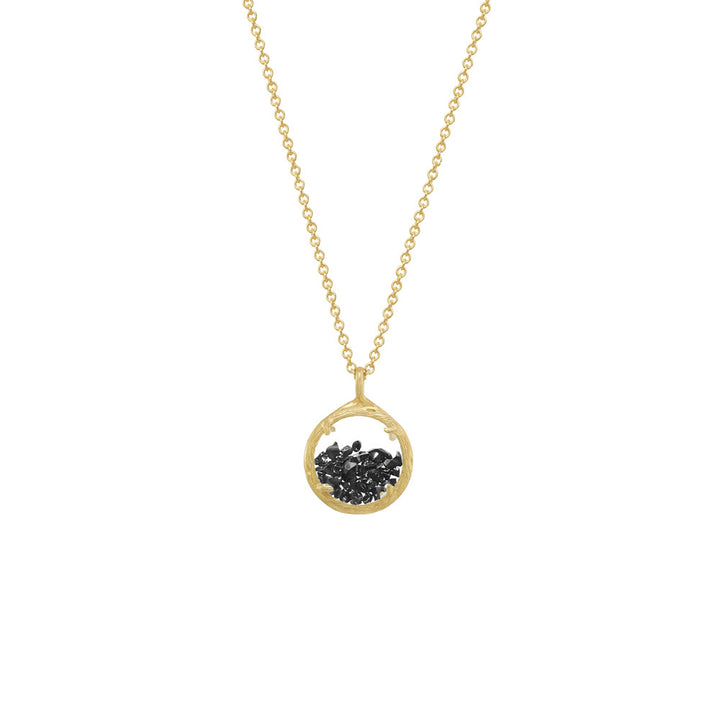 Handcrafted in 18k gold vermeil or recycled sterling silver with black spinel and watch glass. Pendant: 15mm; Chain: 16'.