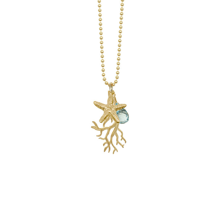 This Seagrass with Starfish and Stone Necklace by Catherine Weitzman is a vibrant, nature-cast treasure that blends ocean life with a touch of sparkle. Featuring seagrass and a starfish pendant cast from nature and accented with a dazzling Swiss blue topaz briolette, it’s a playful yet elegant talisman for seaside serenity. Handmade in Hawaii.