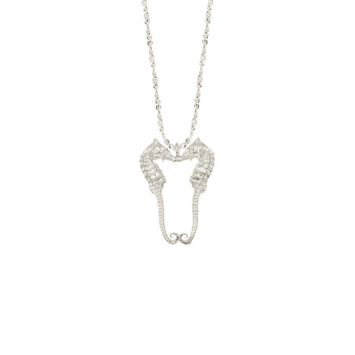 This Kissing Seahorse Necklace by Catherine Weitzman captures a moment of connection beneath the waves. The sweetly sculpted pendant, featuring a pair of seahorses joined in an affectionate pose, is cast from real marine specimens and rendered with intricate texture. Lightweight and charming, it’s a wearable keepsake of love, unity, and seaside wonder.