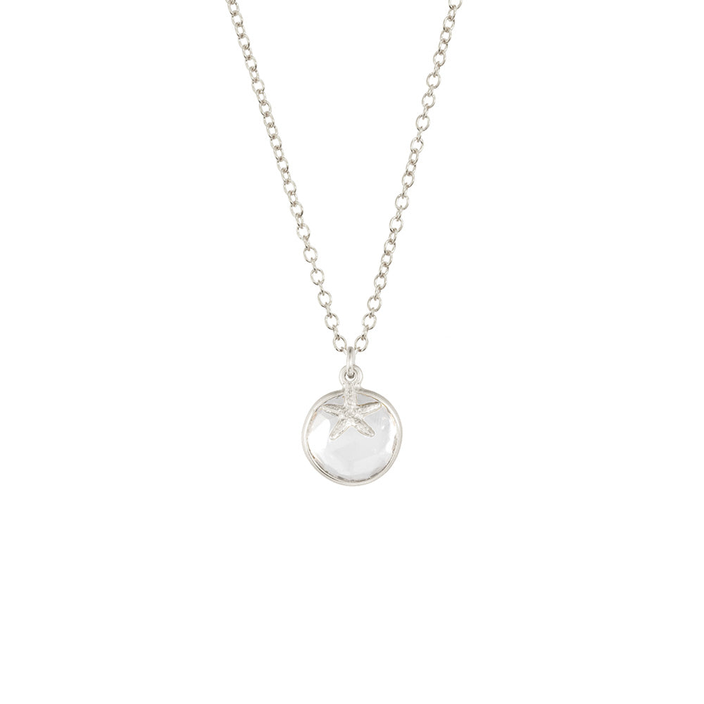 This Mini Starfish with Bezel Necklace by Catherine Weitzman captures coastal charm in a beautifully refined form. A tiny, lifelike starfish, cast from nature, floats atop a sparkling bed of clear quartz crystals, enclosed in a bezel setting. Delicate and radiant, this piece brings the warmth of summer seas to your everyday look. A sweet and sophisticated keepsake from the shore.