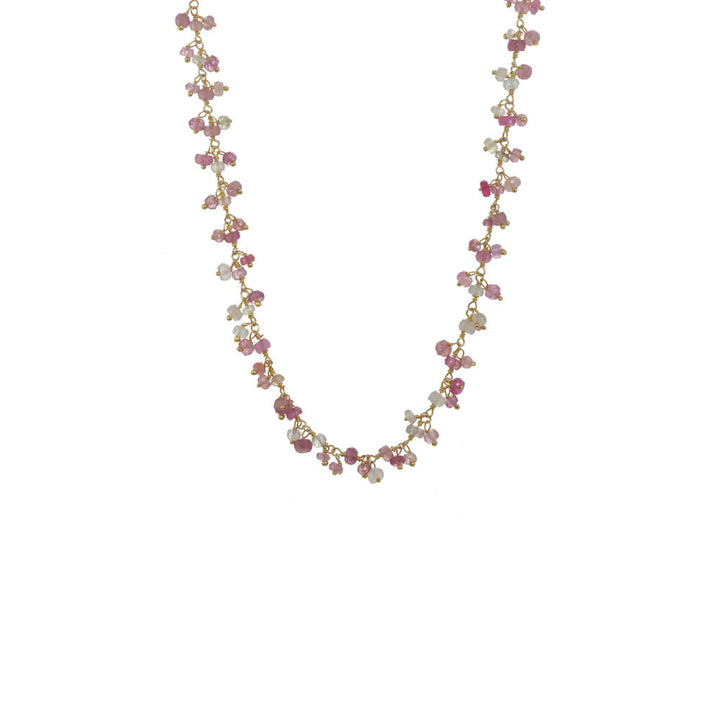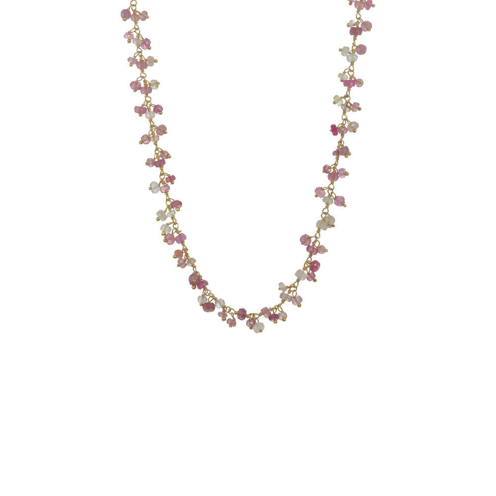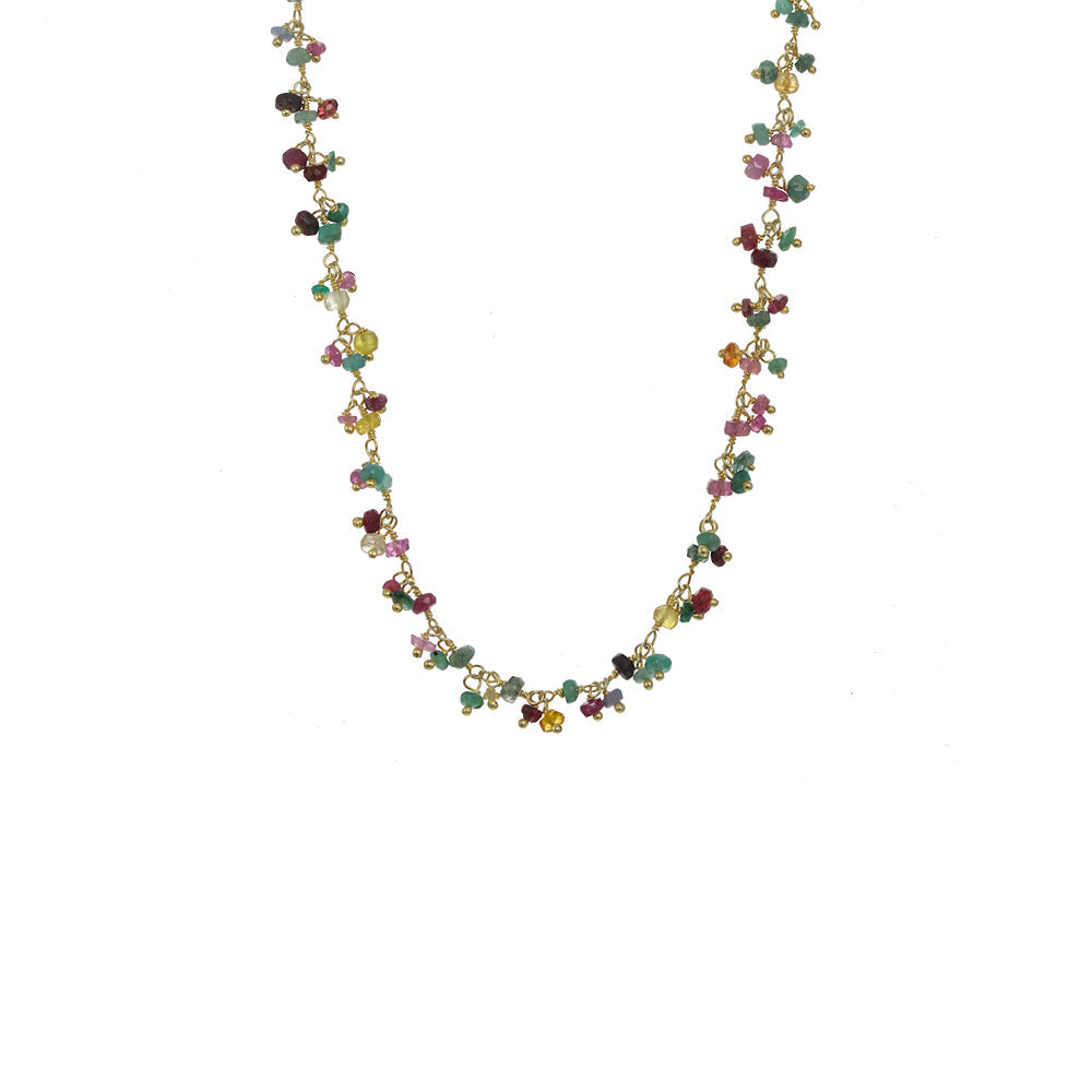 This Gemstone Dangle Choker by Catherine Weitzman brings vibrant charm to the neckline with a dainty cascade of ruby gemstone drops along a delicate gold-fill chain. The design’s flexible length makes it perfect for layering or wearing solo, day or night. Lively yet sophisticated, it’s a chic modern statement infused with natural beauty.