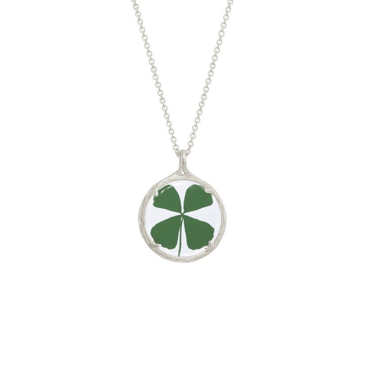 This Small Clover Necklace by Catherine Weitzman elevates the symbolism of luck with natural elegance. Featuring a hand-pressed clover set inside a double-sided glass pendant and accented by a textured branch frame, this piece brings a serene charm to your jewelry collection. A thoughtful and poetic everyday adornment.