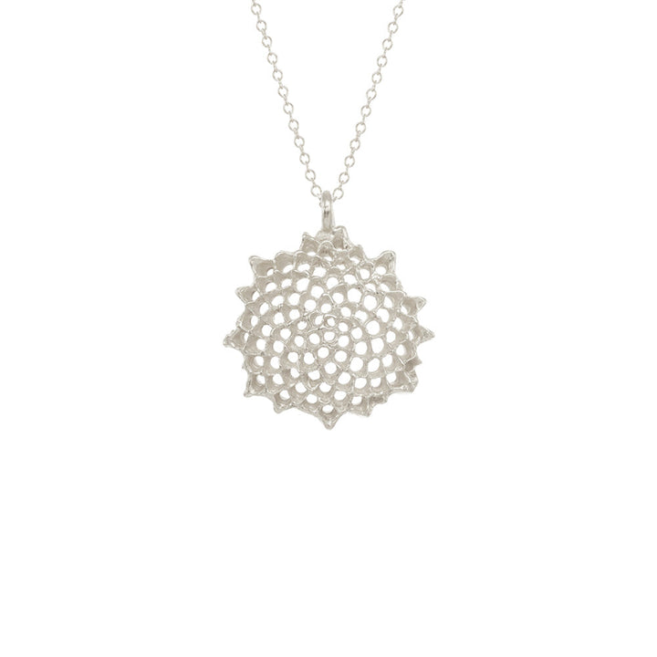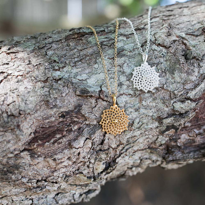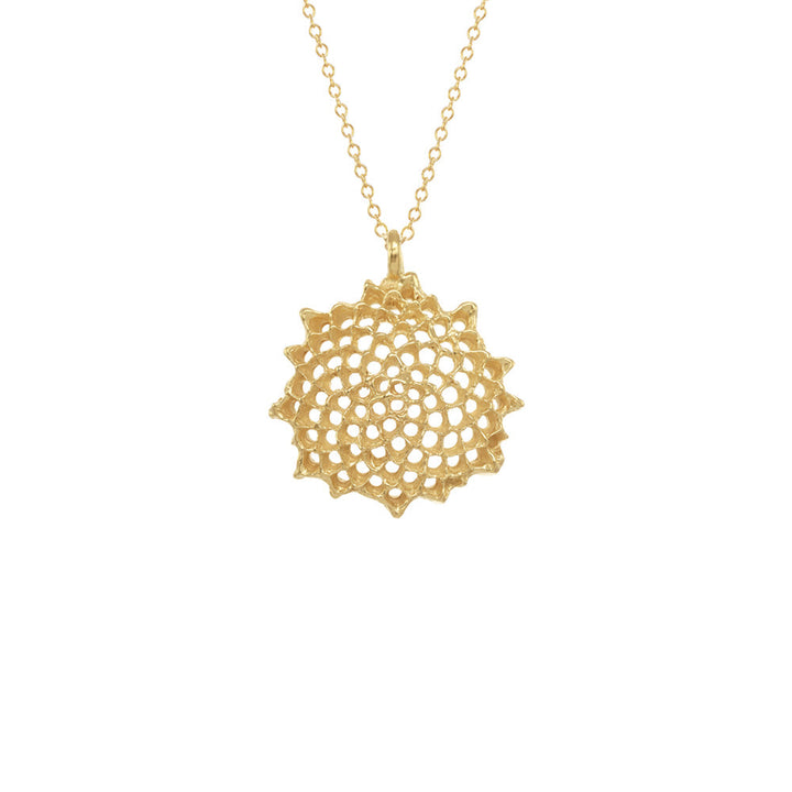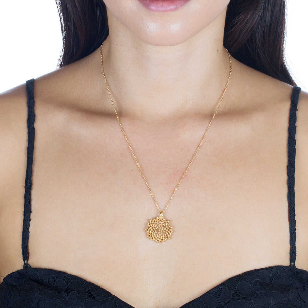 Handcrafted in 18K Gold Vermeil or Recycled Sterling Silver. Pendant: 1' diameter. Chain: 20'.