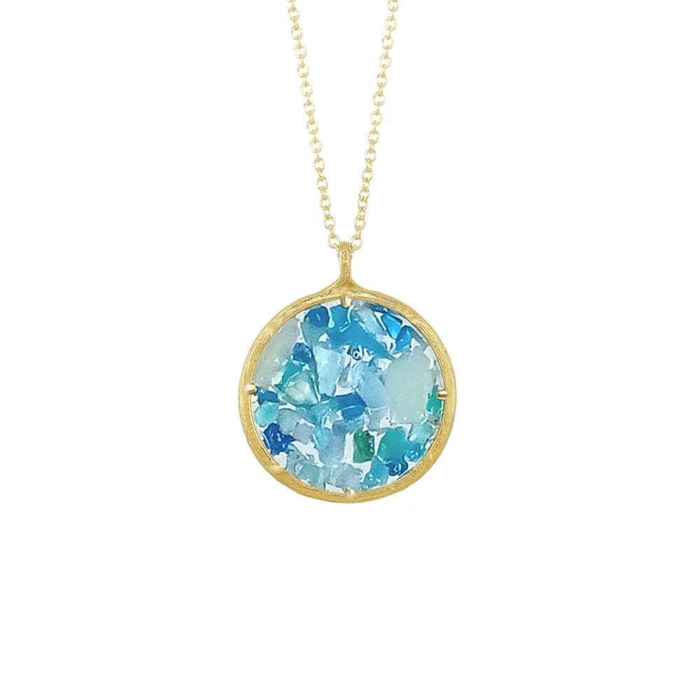Handcrafted in 18K Gold Vermeil or Silver with eco-friendly resin and recycled microplastic. Pendant: 25mm. Chain: 18' + 2' extension.