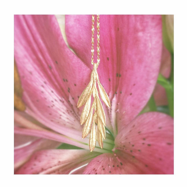 This Swaying Leaf Necklace by Catherine Weitzman channels the gentle rhythm of a tropical breeze. The organically textured leaves hang with soft movement, suspended on a graceful chain for an effortlessly elegant statement. Handmade in Hawaii.