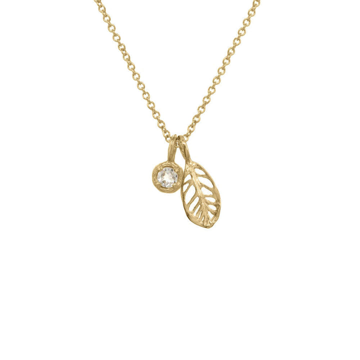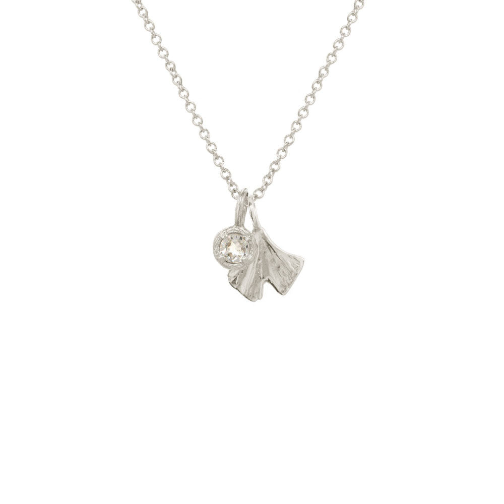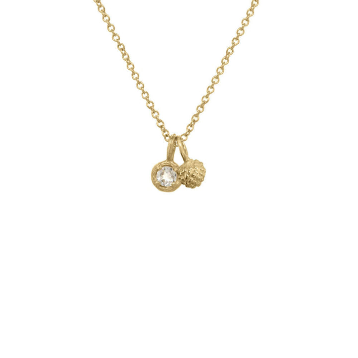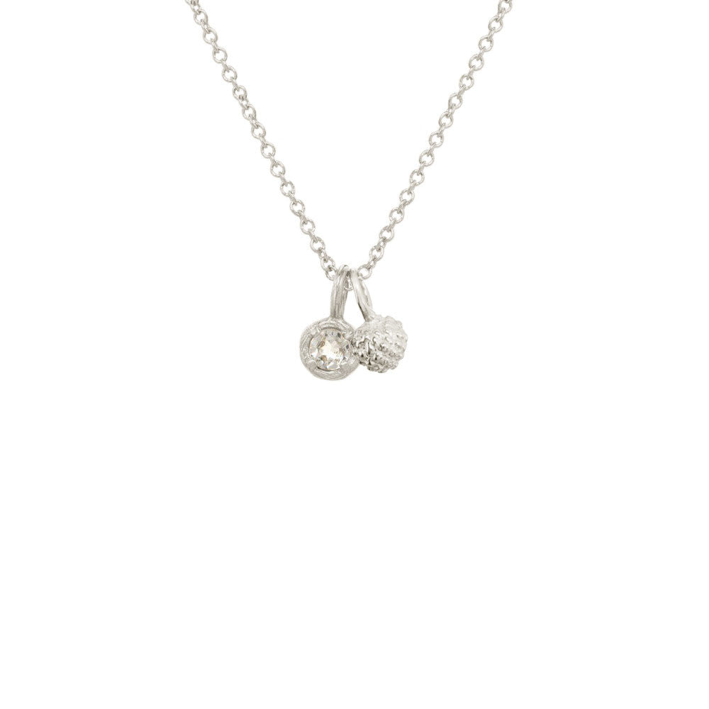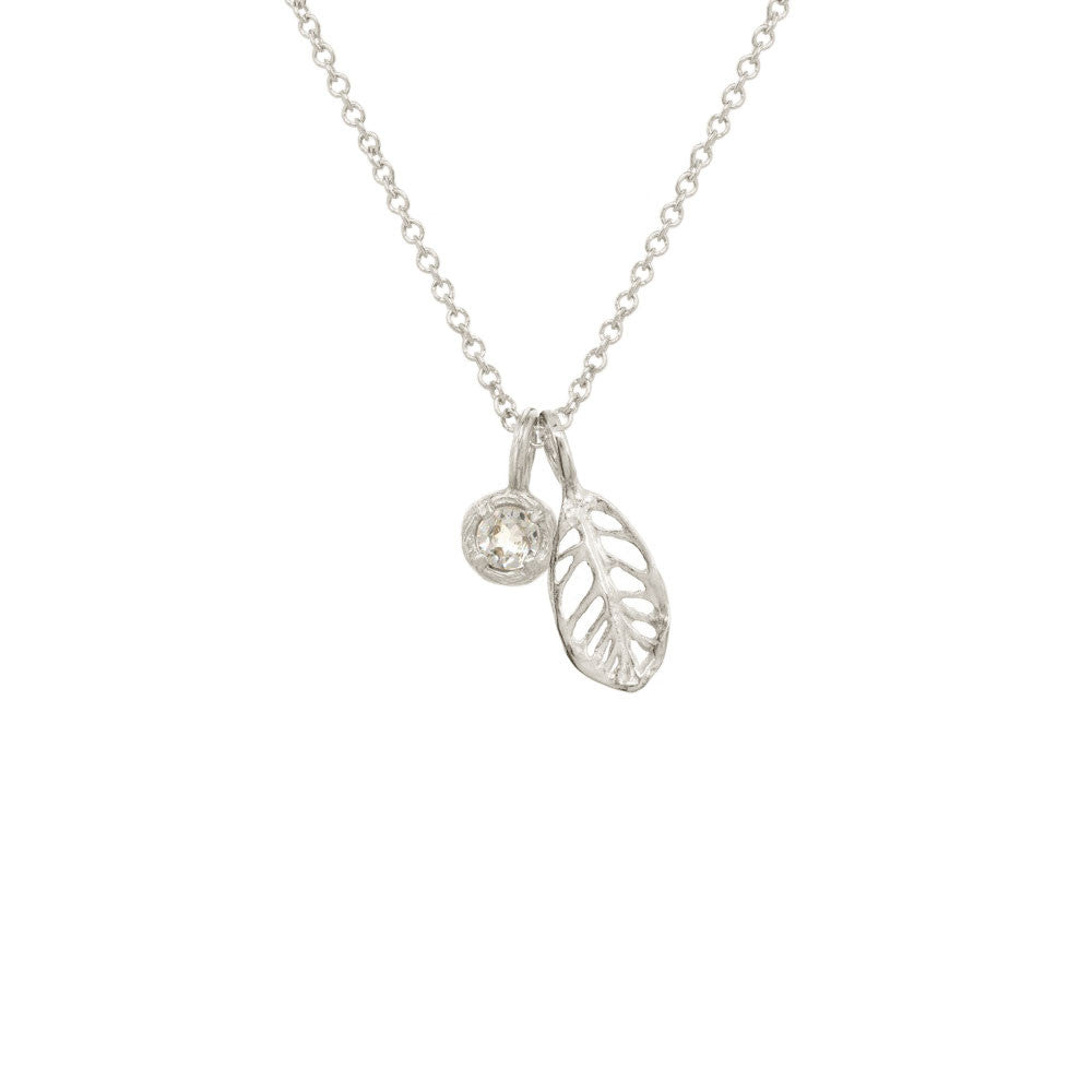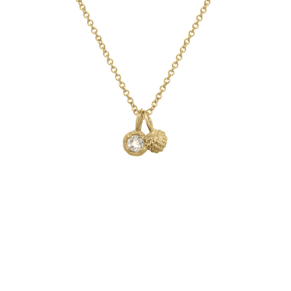 Handcrafted in 18k gold vermeil or recycled sterling silver with a 3mm white topaz stone. Chain length: 16'.
