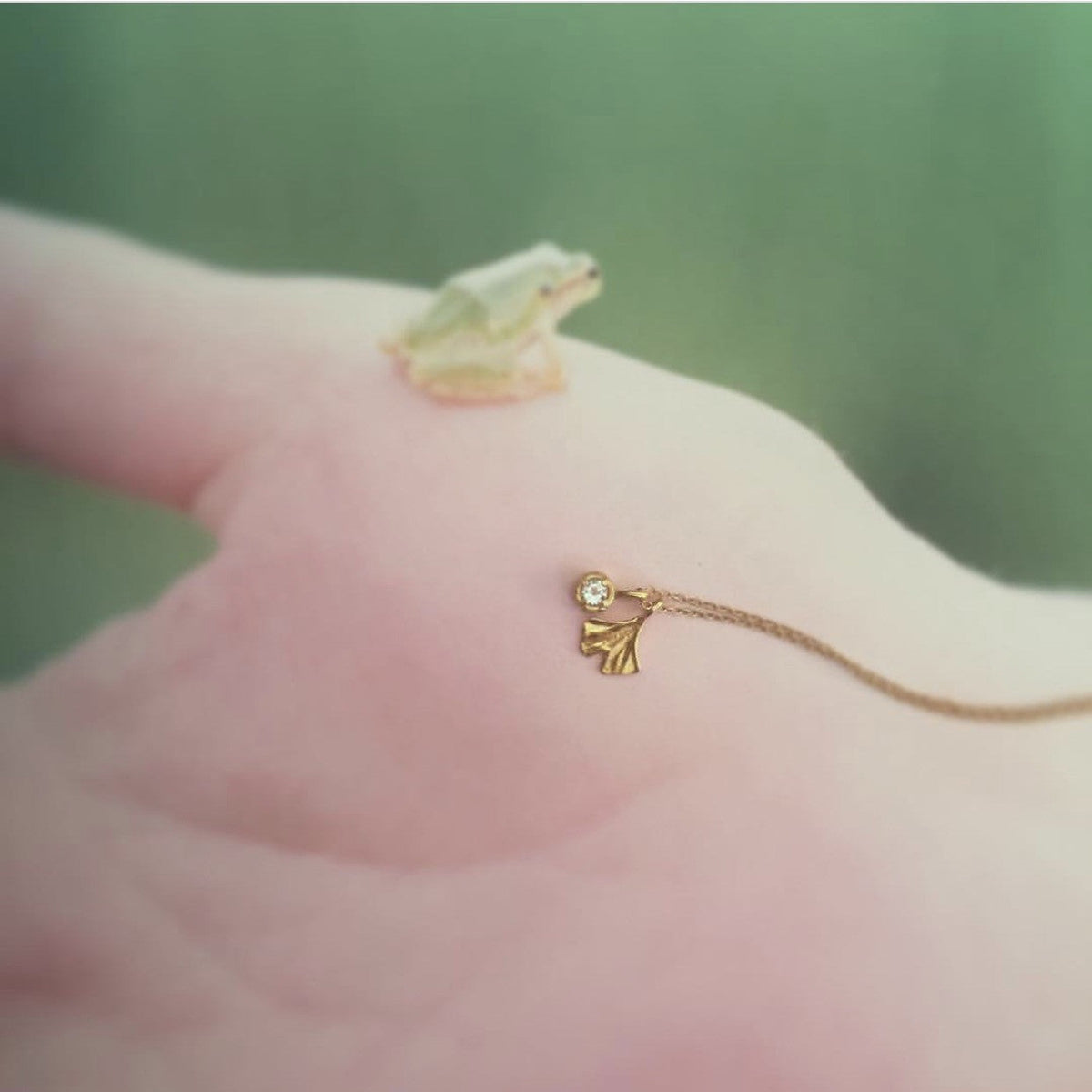 This Mini Nature Charm With Solitaire Necklace by Catherine Weitzman blends intricate charm detail with a brilliant white topaz. Evoking timeless elegance, the design is soft, organic, and quietly powerful. Whether chosen for its symbolic motif or luminous gem, this necklace brings subtle sophistication to any outfit. Ideal for layering or wearing solo. Handmade in Hawaii, it perfectly channels the brand’s ethereal, nature-inspired style.