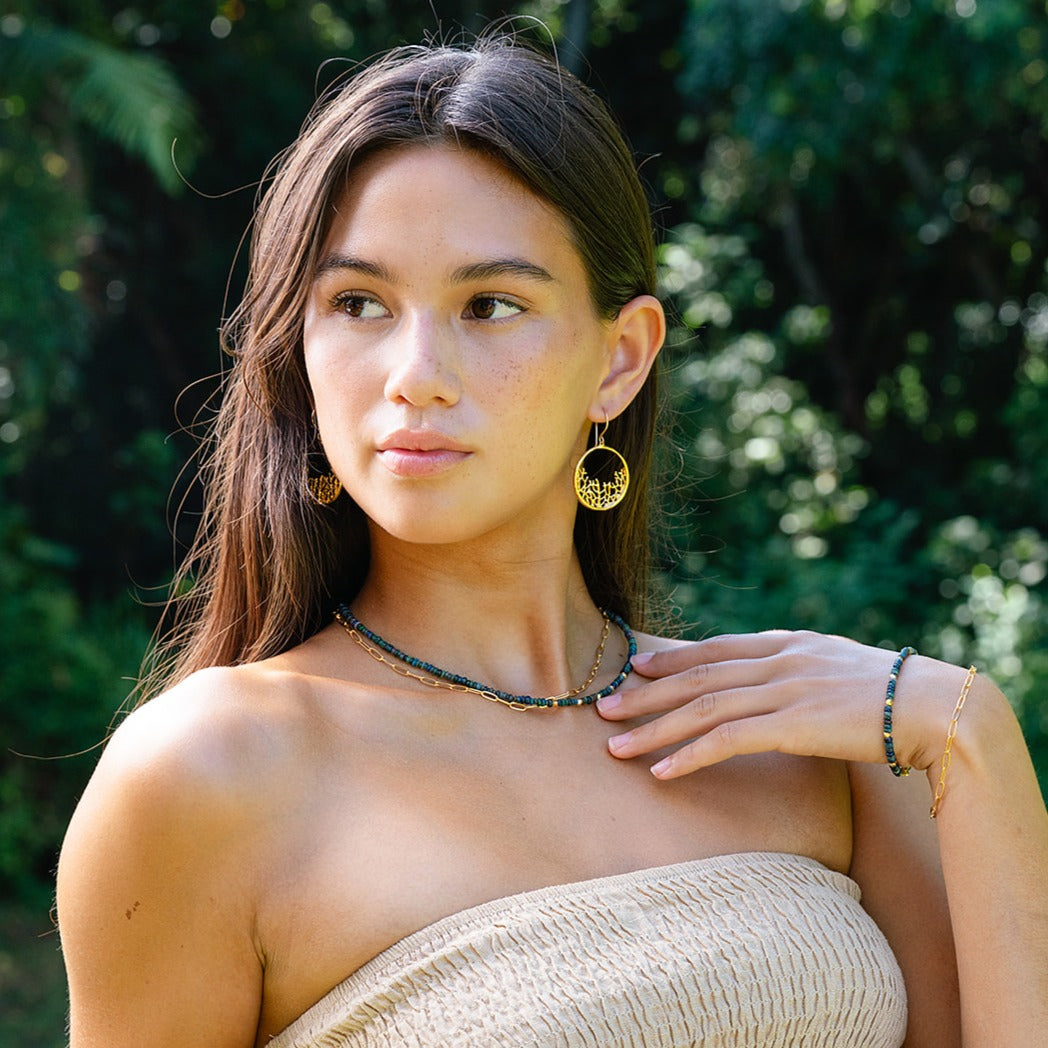 For twenty years, Catherine Weitzman has created jewelry that is inspired by the infinite beauty of nature and handmade in paradise. Catherine's commitment to sustainability is reflected in her use of found objects, recycled metals, and responsible suppliers. Her signature creations seamlessly blend elegance with wearability, appealing to present trends while maintaining timeless style. All jewelry is handcrafted by a team of gifted artisans at her studio in Hawaii.