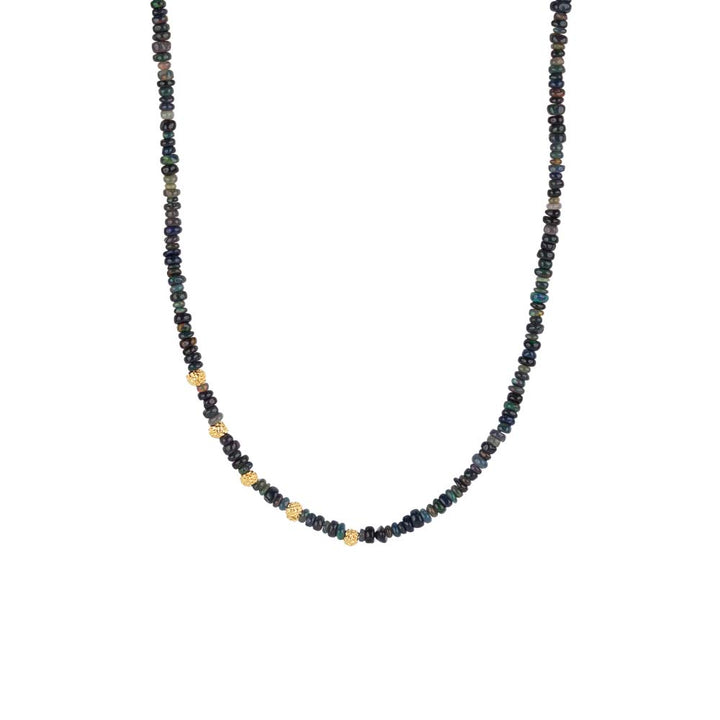 Handcrafted in 18k gold vermeil with black opal. Chain: 16'.