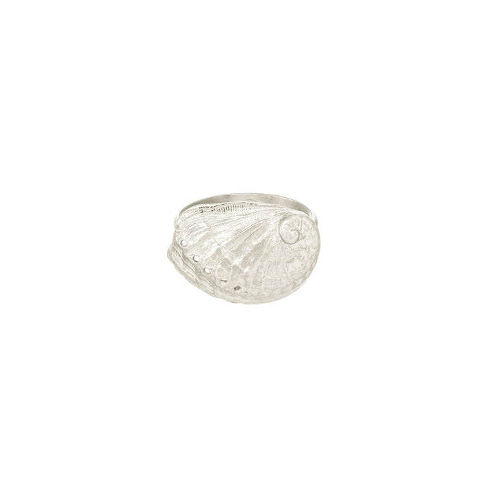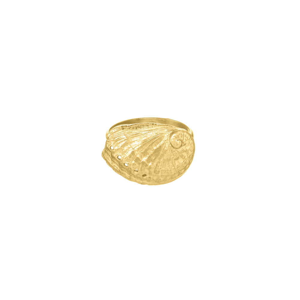 Handcrafted in 18k gold vermeil or recycled sterling silver. Shell texture cast from abalone. Available in size 6.