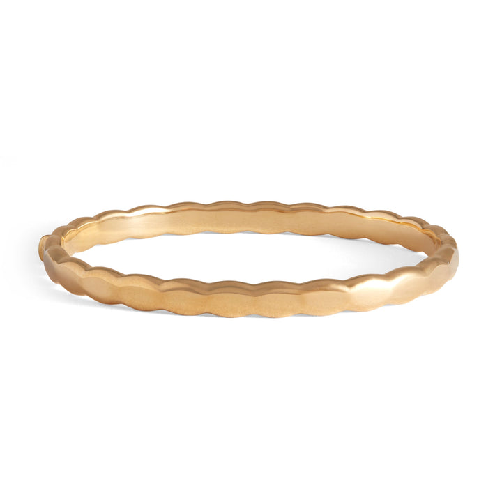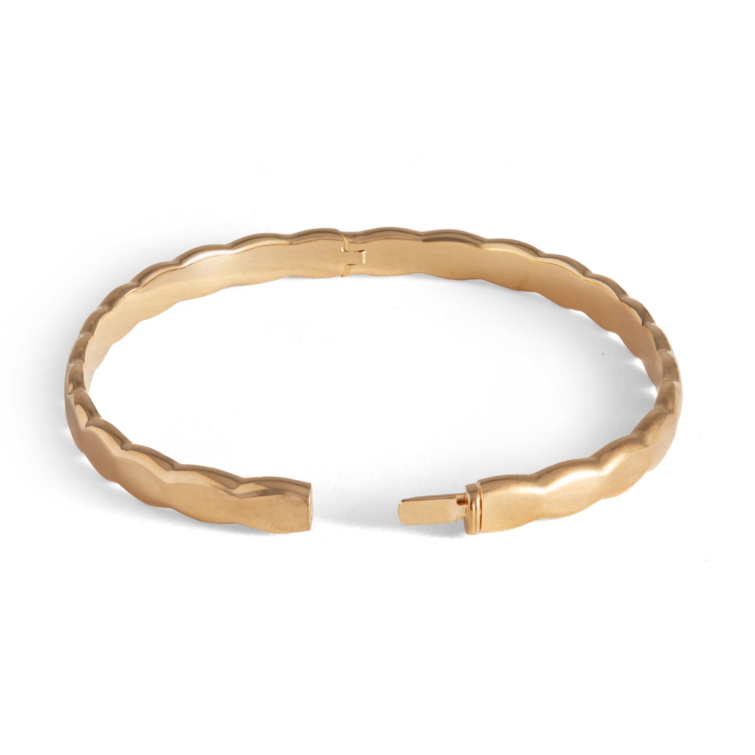 This Gold Essentials Vermeil Narrow Bangle by Daria de Koning offers an elegant oval-shaped design that highlights its understated luxury. Perfect for a minimalist style, this bangle can be worn on its own or stacked with other bangles for a layered look.
