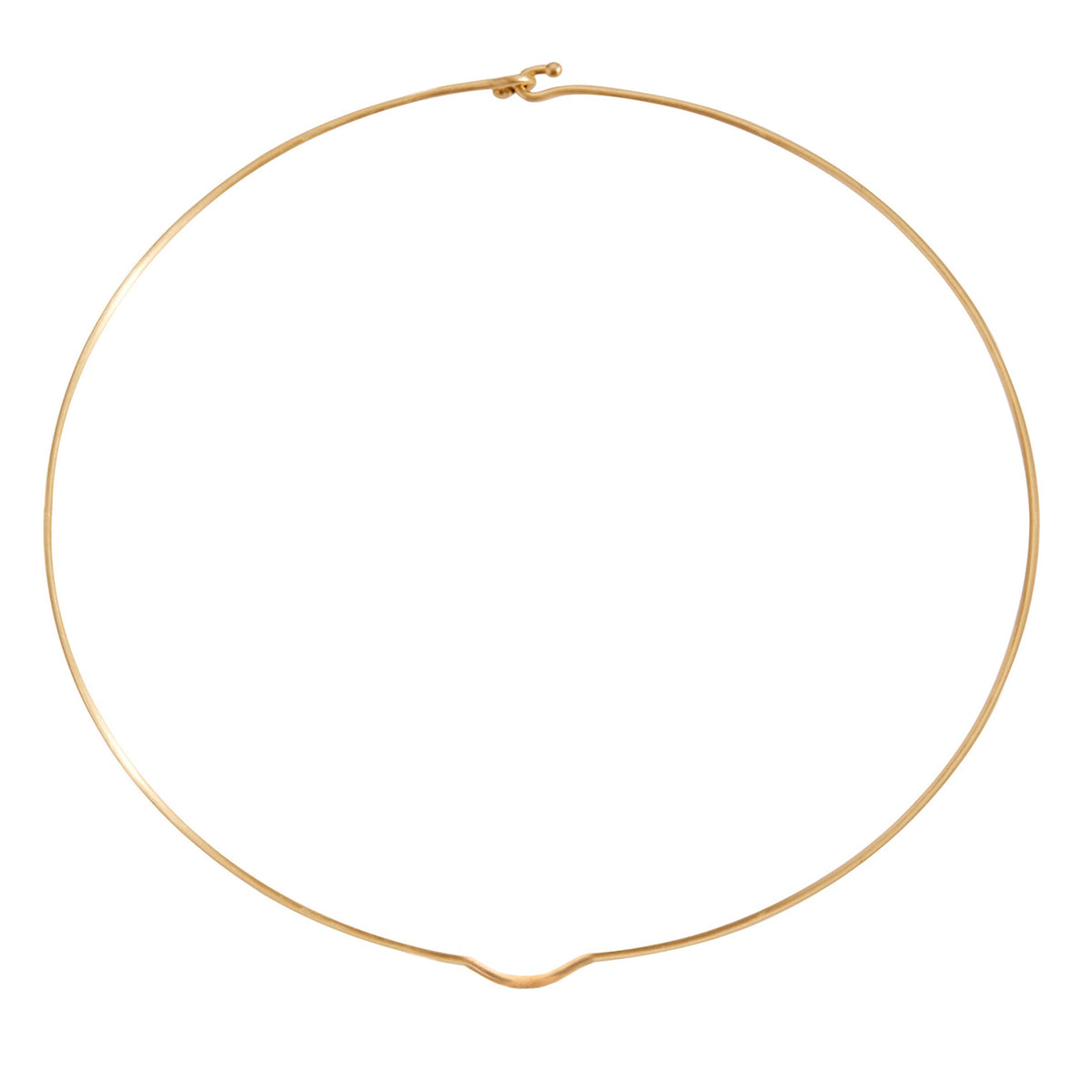 This Gold Torque by Daria de Koning is a foundational staple within the Nomos Collection, designed to highlight and elevate the brand's sculptural pendants. With its clean arc of hand-forged 18k yellow gold and subtle hook clasp, this elegant torque offers a refined yet bold framework for layering or wearing alone. The delicate nook at the front seamlessly accommodates a charm, offering the ultimate customizable display of luxury.