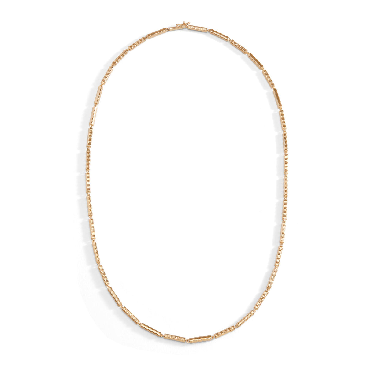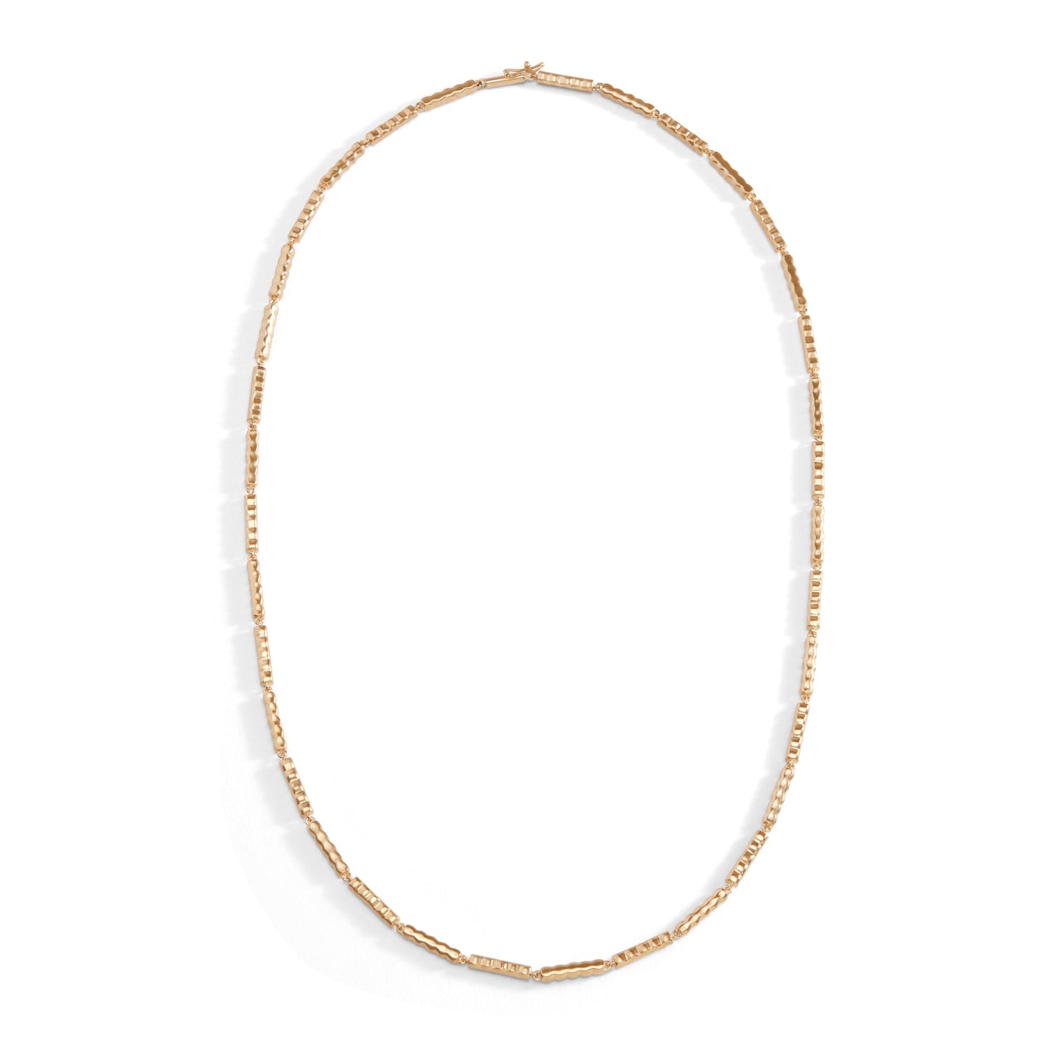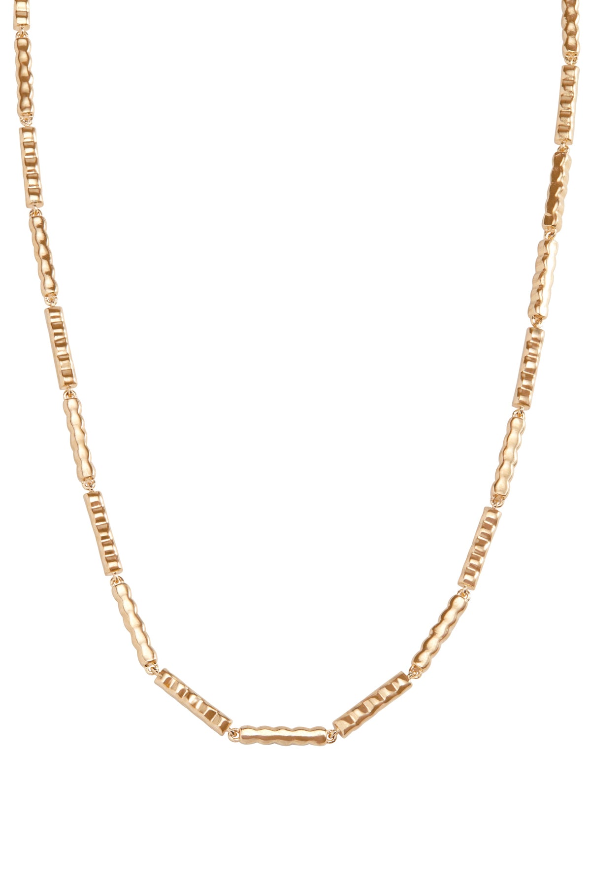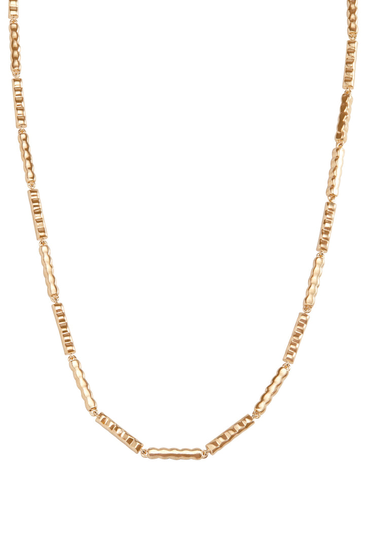 Style Notes: This Gold Essentials Wave-Bar Link Necklace by Daria de Koning delivers effortless elegance in every link. With its fluid gold vermeil bars and seamless clasp, it’s a versatile staple designed to be worn solo, doubled up, or wrapped around as a bracelet. A modular essential for everyday luxury, it brings sculptural form and golden glow to your jewelry wardrobe.