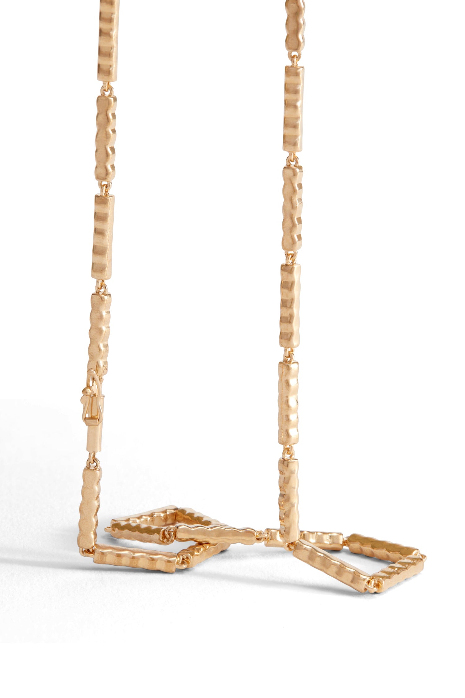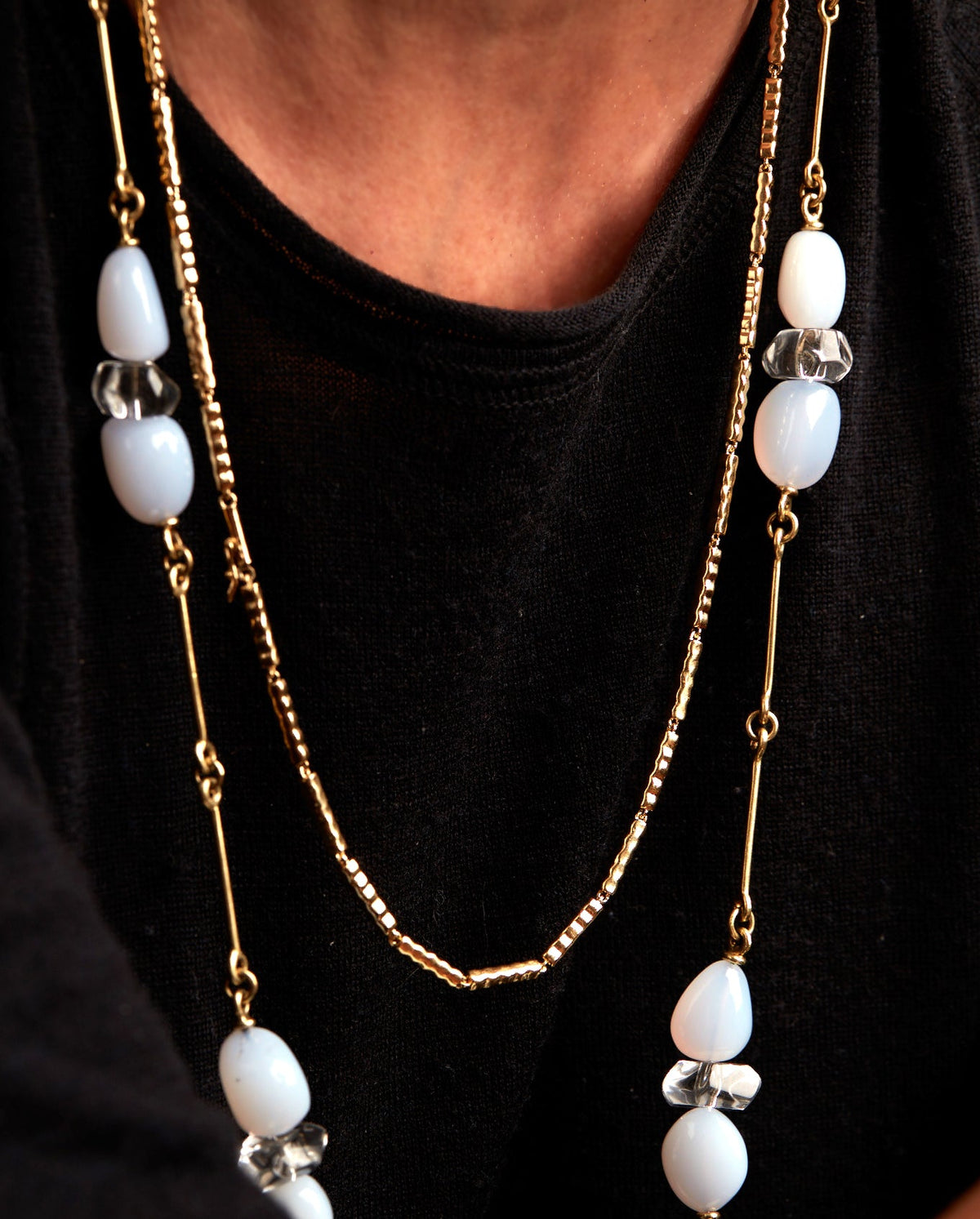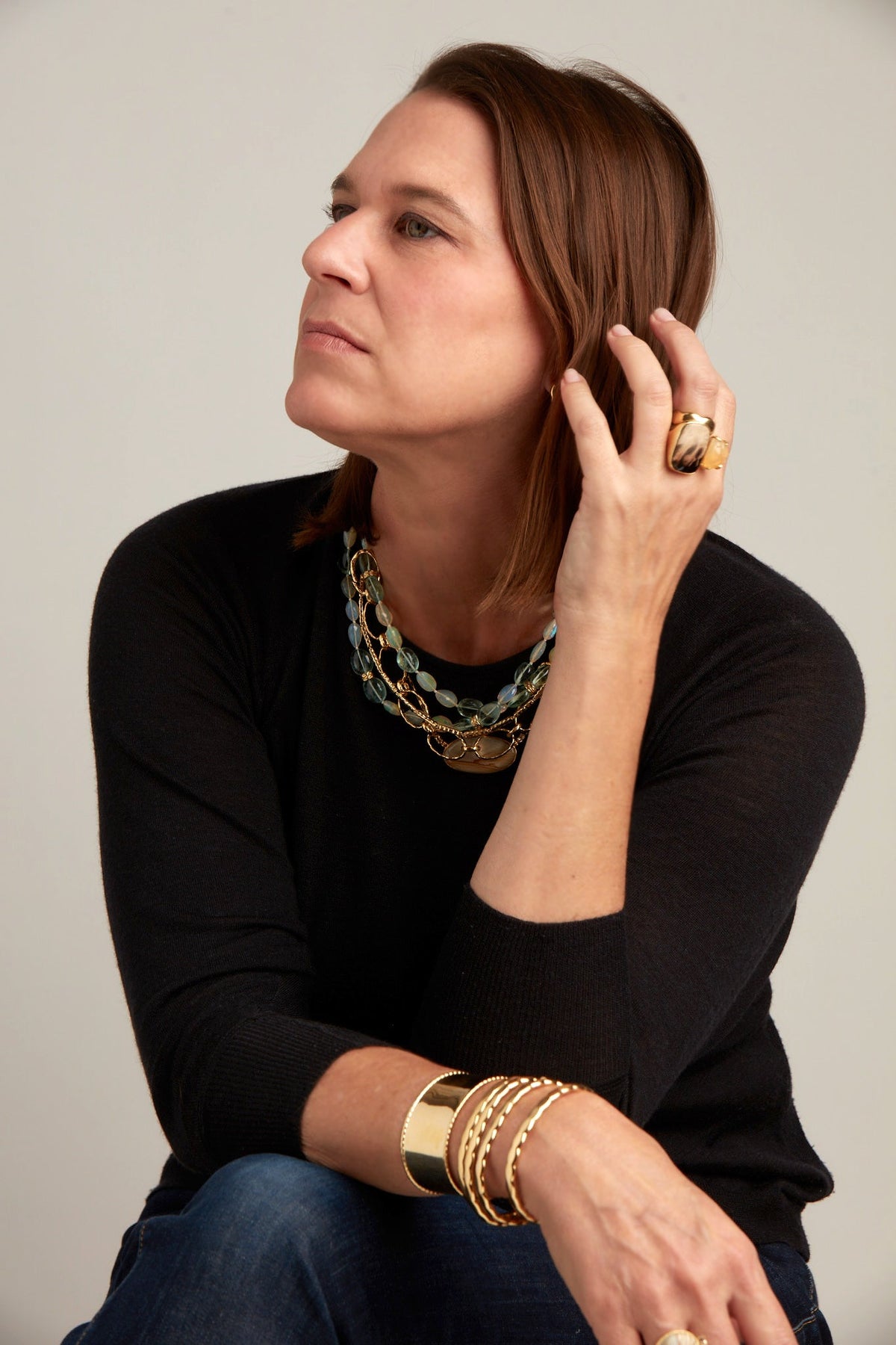 Style Notes: This Gold Essentials Wave-Bar Link Necklace by Daria de Koning delivers effortless elegance in every link. With its fluid gold vermeil bars and seamless clasp, it’s a versatile staple designed to be worn solo, doubled up, or wrapped around as a bracelet. A modular essential for everyday luxury, it brings sculptural form and golden glow to your jewelry wardrobe.