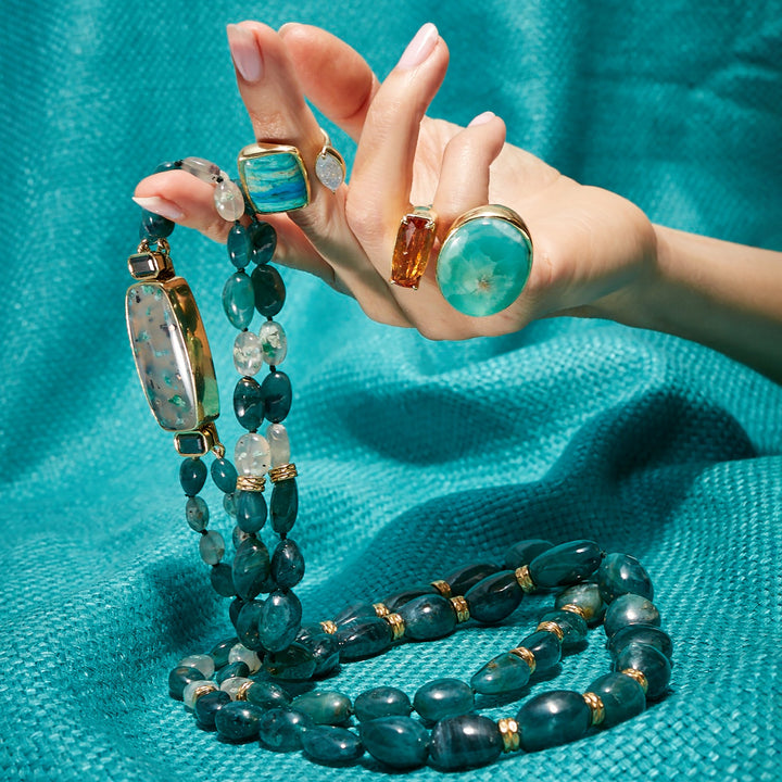 Nicknamed the “Gem Whisperer", Daria de Koning is a Los-Angeles based jewelry designer and gemologist. She creates art meant to be worn and treasured as pieces of a vast collection of beauty. Her one-of-a-kind jewelry reflects femininity, confidence, and spiritedness. Daria's designs never begin in a sketchbook, but in the inner world of matrix-rich gemstones that speak to her. She is a matchmaker of colors and shapes that were destined to be together.