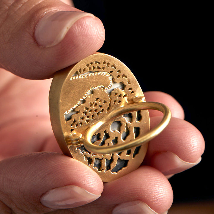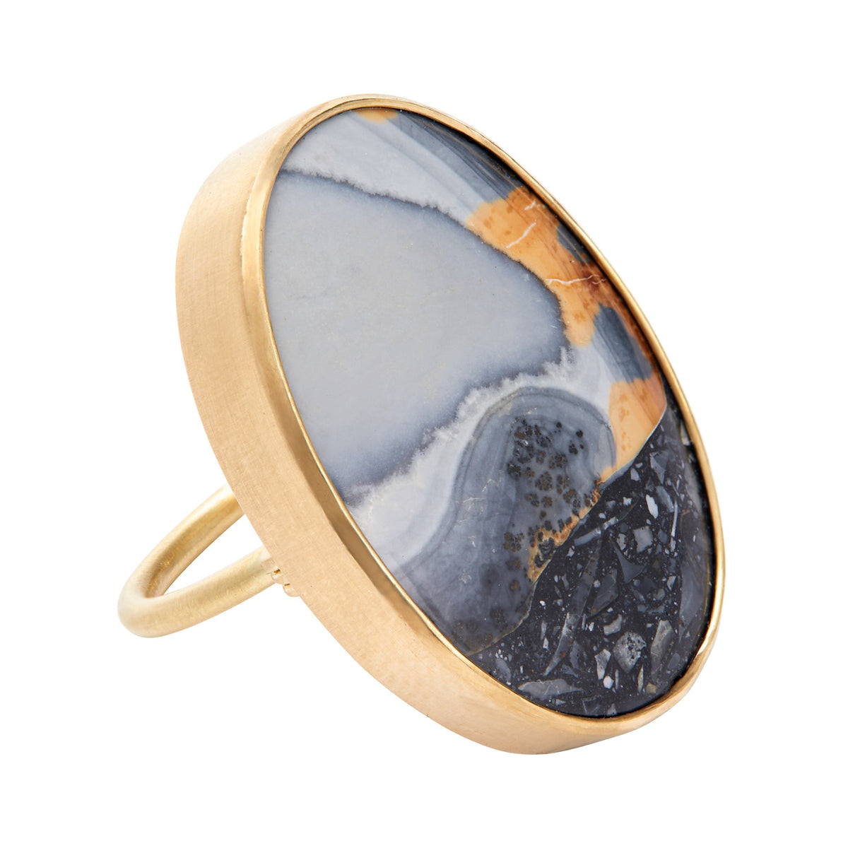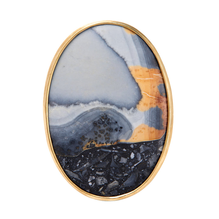 Maligano Jasper set in 18k yellow gold. Measures 24 x 33mm. Ring size 8.