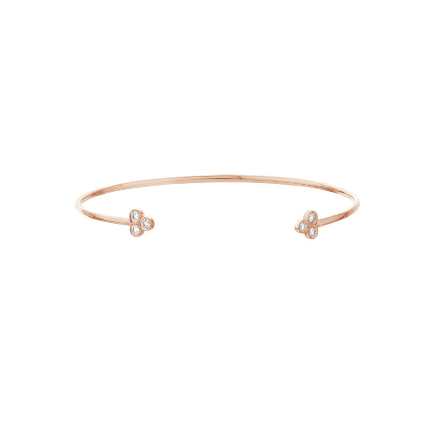 Made in 14K solid gold (yellow, white, or rose) with 3mm gemstone ends. Open cuff design.