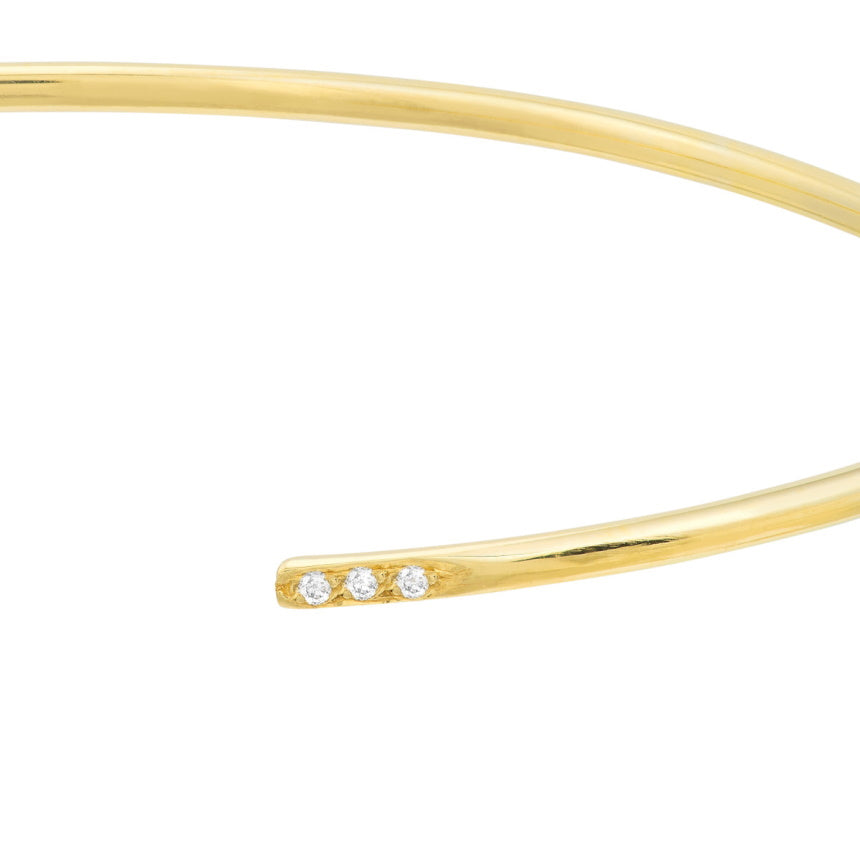 Handcrafted in 14K solid gold (yellow, white, or rose) with six round brilliant-cut diamonds totaling 0.06 carats. Open cuff style.