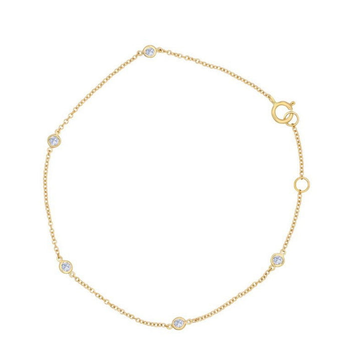 Crafted in 14K solid gold (yellow, white, or rose) with .25 carats total weight of GH-color round diamonds (.05 ctw each). Spring clasp. Chain length: 7' with a loop at 6.5'.