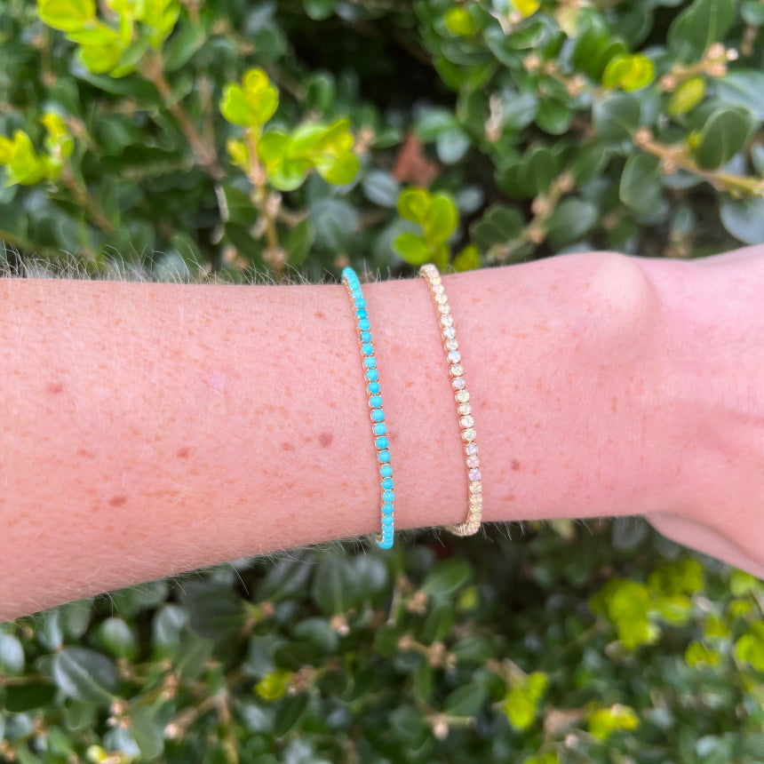 This Gold Opal Tennis Bracelet by Alexis Jae is a luminous celebration of subtle color and refined design. Each white opal shimmers with flashes of iridescent light, delicately set in a dainty gold framework that highlights their natural beauty. Elegant and modern, this bracelet captures the ethereal charm of October’s birthstone, making it perfect for birthdays, anniversaries, or any occasion worthy of enchantment.