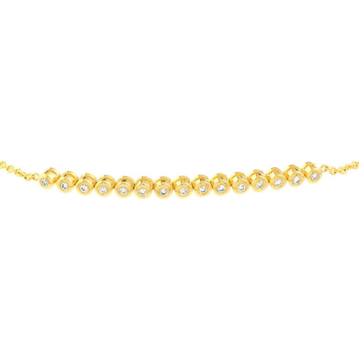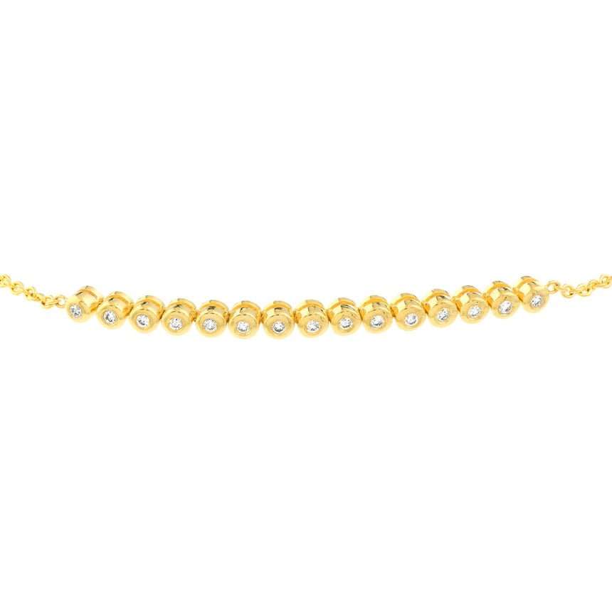 Made in 14K yellow or white gold with round white diamonds totaling .20 ctw. Half-bezel setting with bolo closure for adjustable fit.