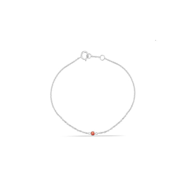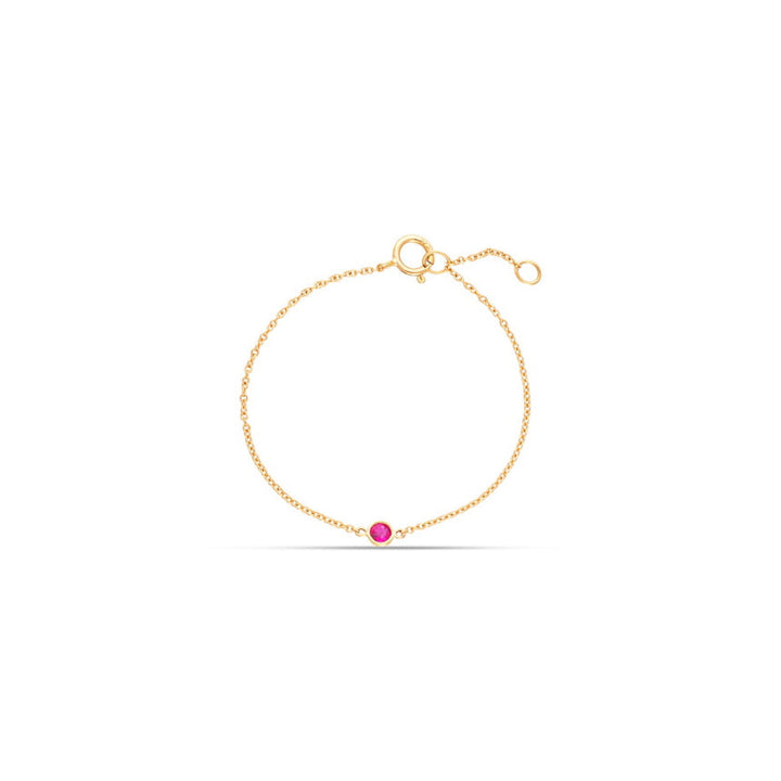 This Gold Bracelet With Ruby Stone by Alexis Jae offers a bold yet elegant pop of color. The vivid red ruby—a symbol of passion, courage, and July birthdays—anchors this delicate bracelet with radiant charm. The solitaire design makes it perfect for stacking or wearing alone, adding a refined statement to any wrist. Thoughtfully crafted, it blends everyday wearability with timeless sentiment.