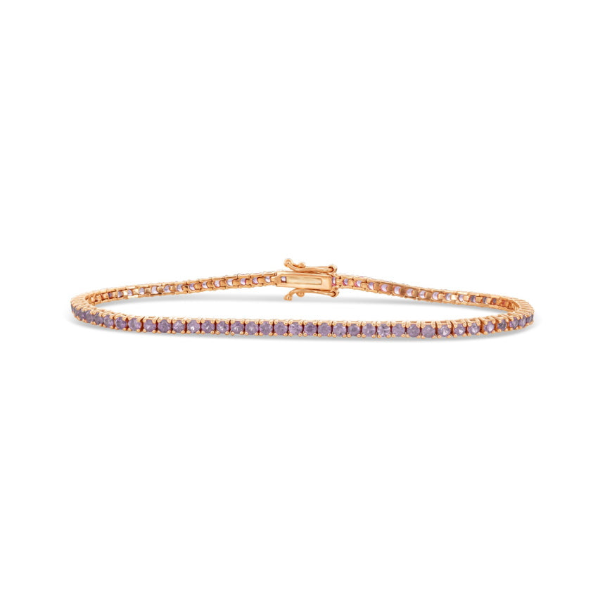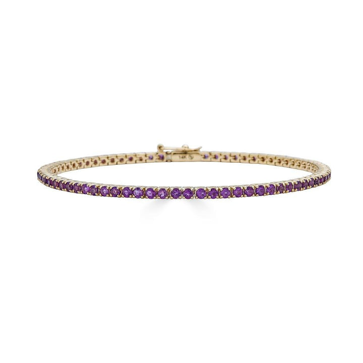 Handcrafted in 14K solid gold (yellow, white, or rose), featuring ~2.2 tcw of round purple amethysts, ~.04 cttw each, in four-prong settings. Available in 6'–7.5' lengths.